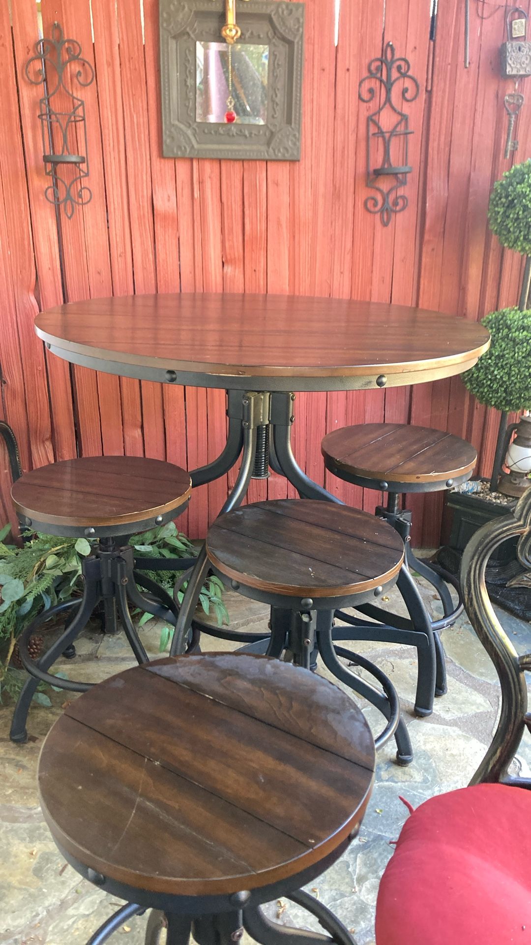 Comes with 4 stools table is like new stools have tiny damage can be easily restored bottom is rod iron adjustable are the stools 150 or best offer