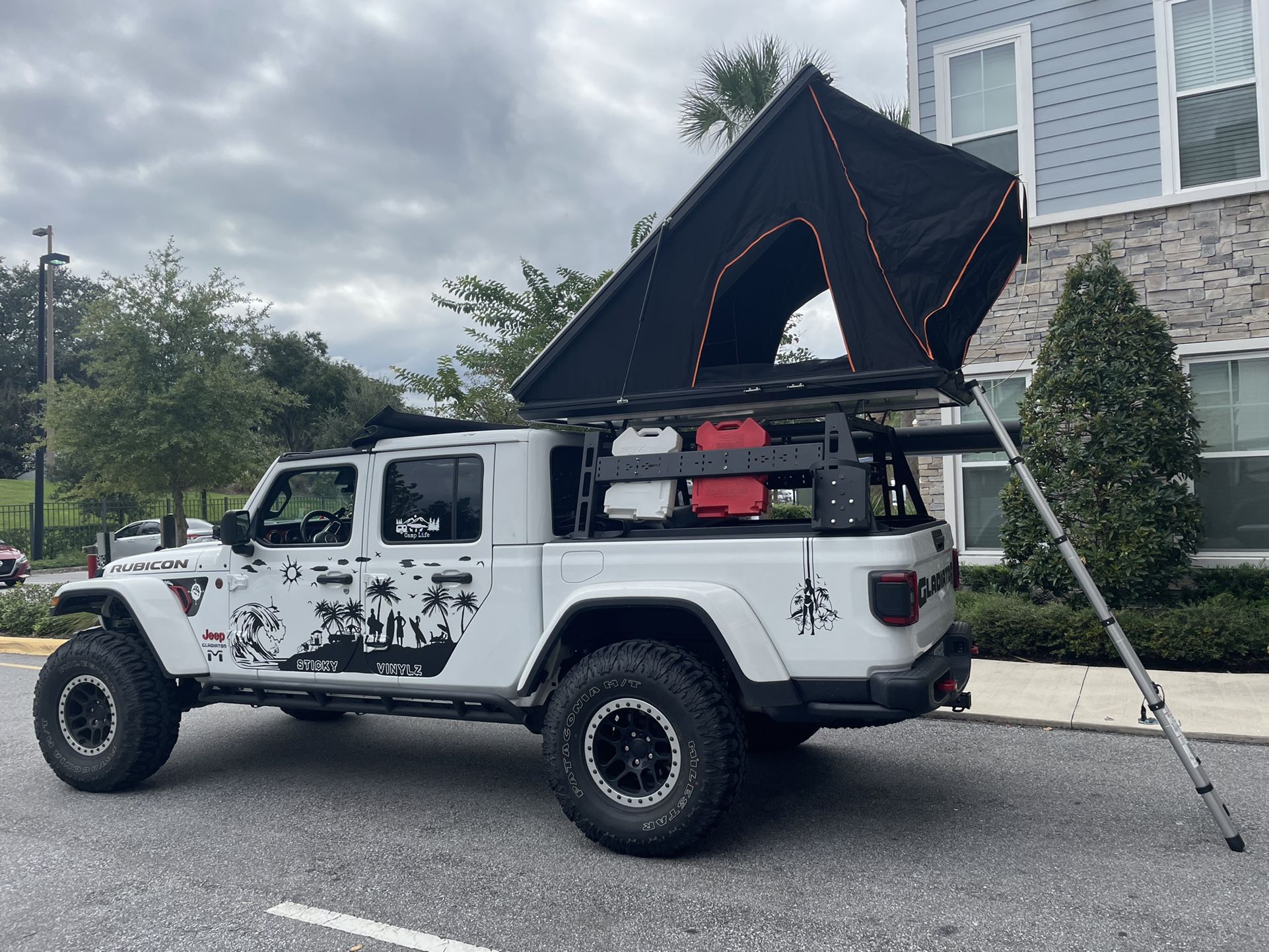 Carpas BRAND NEW IN SEALED BOX. Available colors: Dark grey and military green Fits any truck (you only need to have a rack or crossbars in the roof to attach it) It comes with all the hardware you need to attach it to the rack or crossbars Features: Telescopic ladder πͺ Easy access thru the sides or the back Quick automatic opening Closed shell measures: 82βx52βx6β Open shell measures: 82βx52βx56β Mattress measure: 75βx49βx3β Inside organizer pockets Outside shoe storage bag Total weight: around 150 pounds Ready to sleep in less that 60 seconds EASY INSTALL: you only need cross bars in your roof