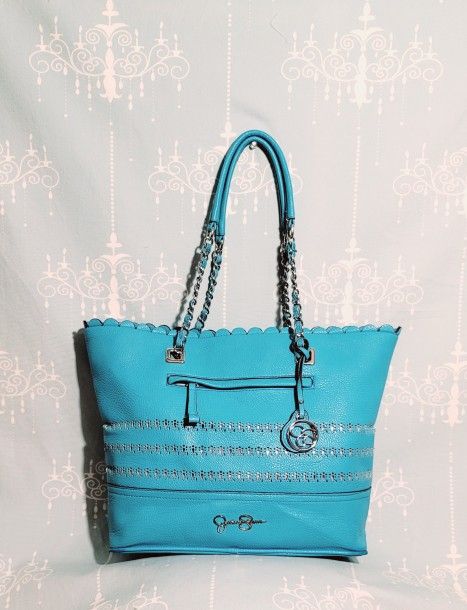 Jessica Simpson's great spring colored beautiful blue large purse ..color is great, has lots of compartments on the inside ..no blemishes looks brand new!