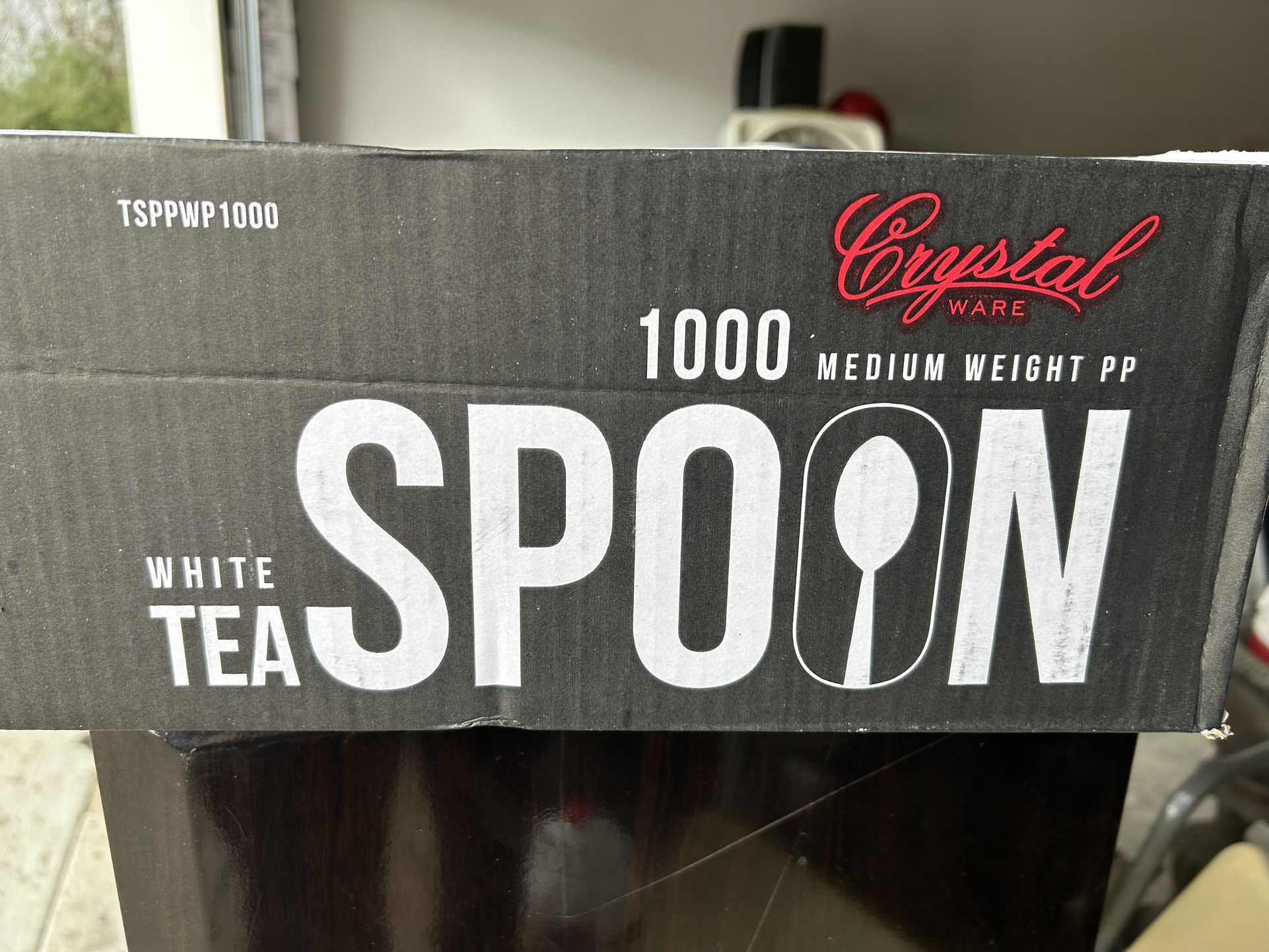 I am selling 12 new boxes of spoons. Each box contains 1000 spoons, white, medium weight. Best offer.