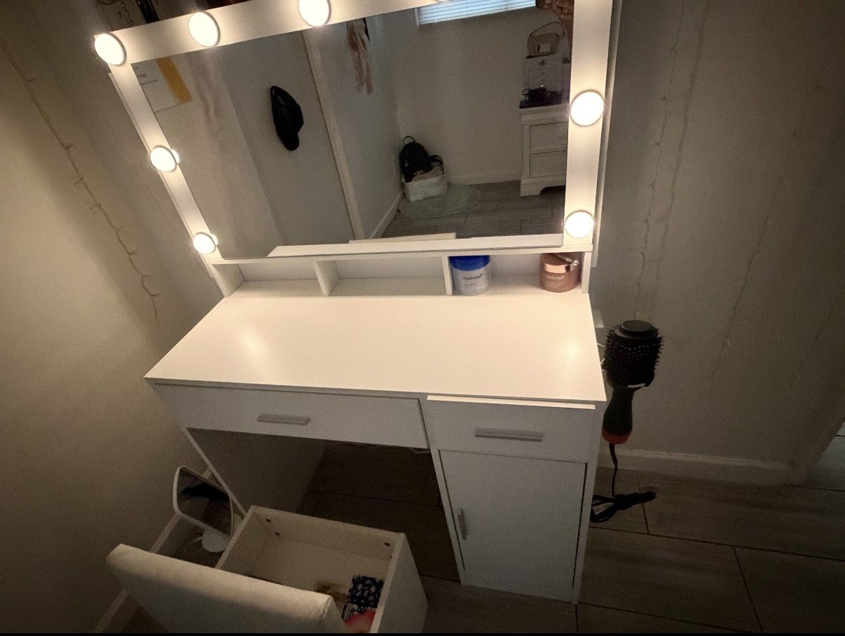 Vanity Set – Like New – With Vanity Stool & Lights ✨