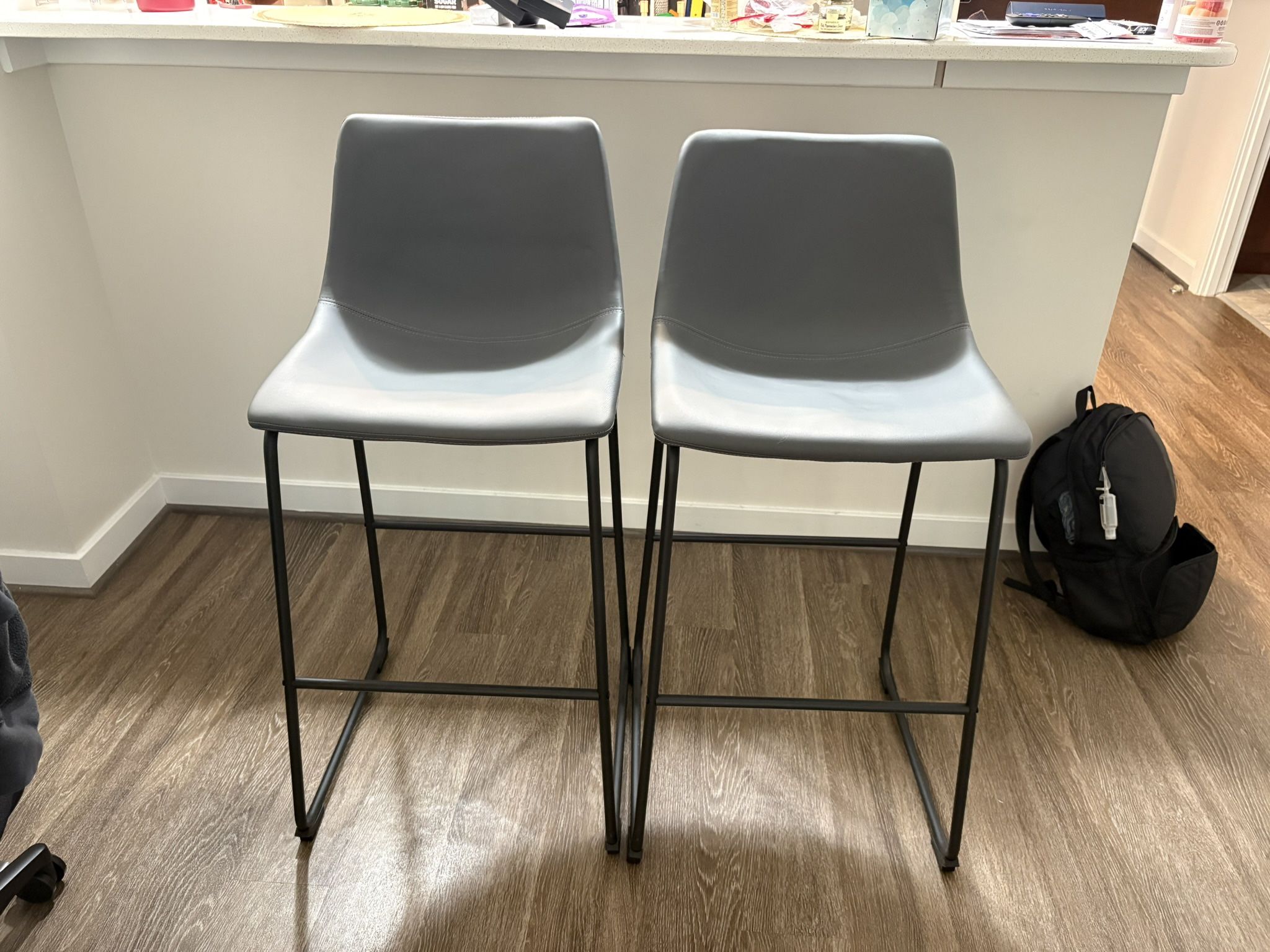 Great condition! Selling 4 modern barstools (2 black & 2 gray) and a matching dining/desk chair (black) β all gently used and in excellent condition. Sleek and stylish, perfect for a kitchen island, breakfast bar, or high-top dining area. Barstools were originally bought for $75 each. Dining chair was bought for $50. π΅ Pricing options β’ 2 barstools β $80 β’ All 4 barstools β $150 β’ Dining chair only β $25 β’ 2 barstools + dining chair β $100 β’ 4 barstools + dining chair β $165 From a smoke-free, pet-free home. Only selling because Iβm moving