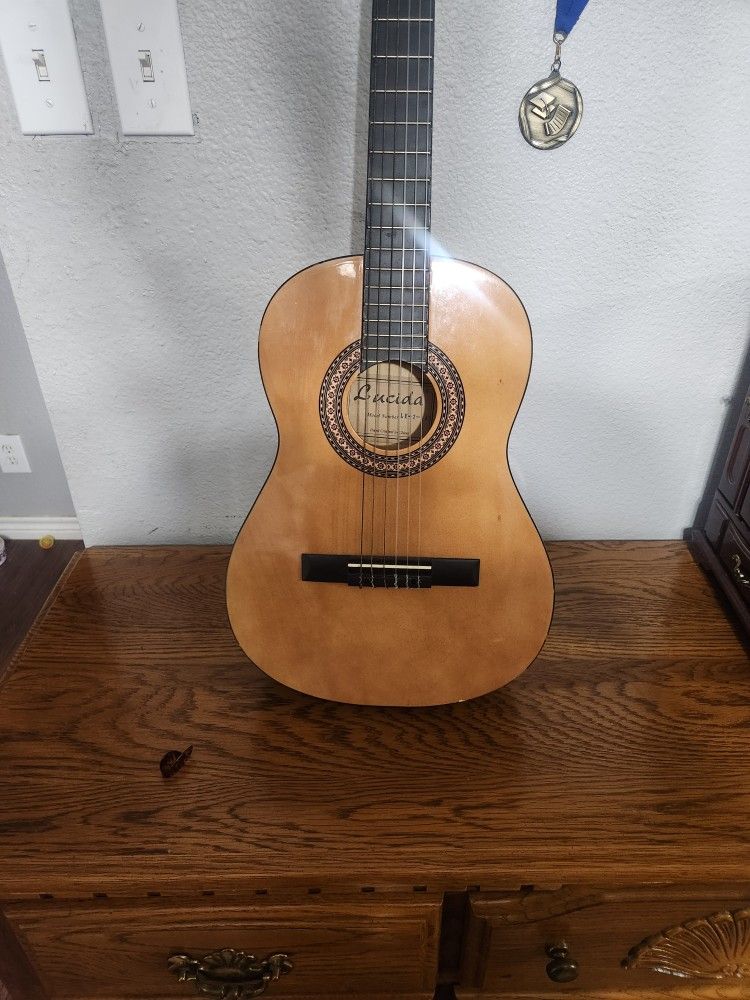A guitar in good condition. Not a musical person myself and it's just been collecting dust. It comes with its pick and all strings still attach.