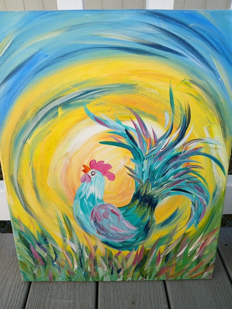 20 in tall x 16 in wide Colorful Painting of a rooster π ----- Bundle Paintings for a Holiday Discount! Dos o mas pinturas para un Descuento!