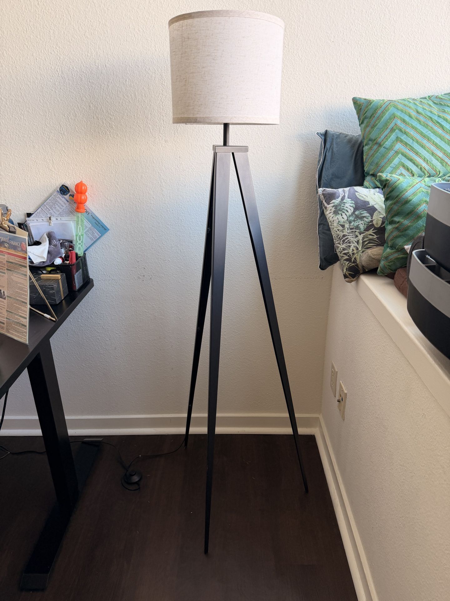 Modern Tripod Floor Lamp with Drum Shade – Good Condition
