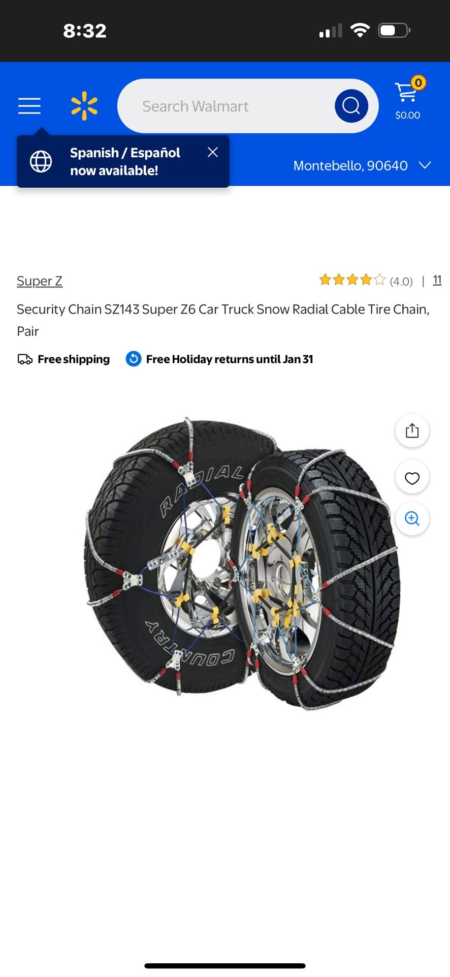 Security Chain SZ143 Super Z6 Car Truck Snow Radial Cable Tire Chain, Pair