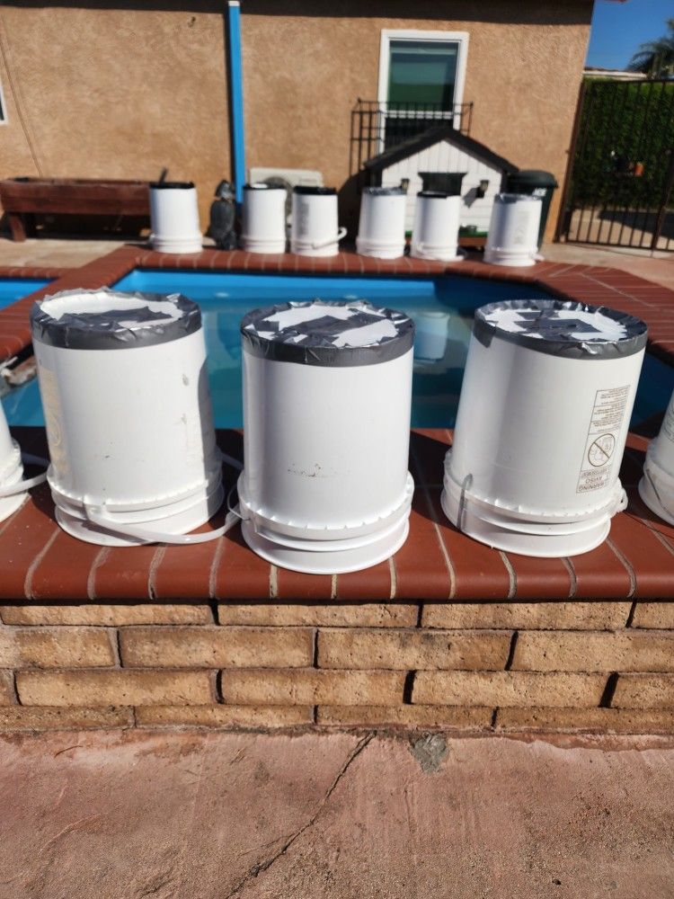 $2 each. New with no lid. No longer needed. 12 buckets total. Must pick up.