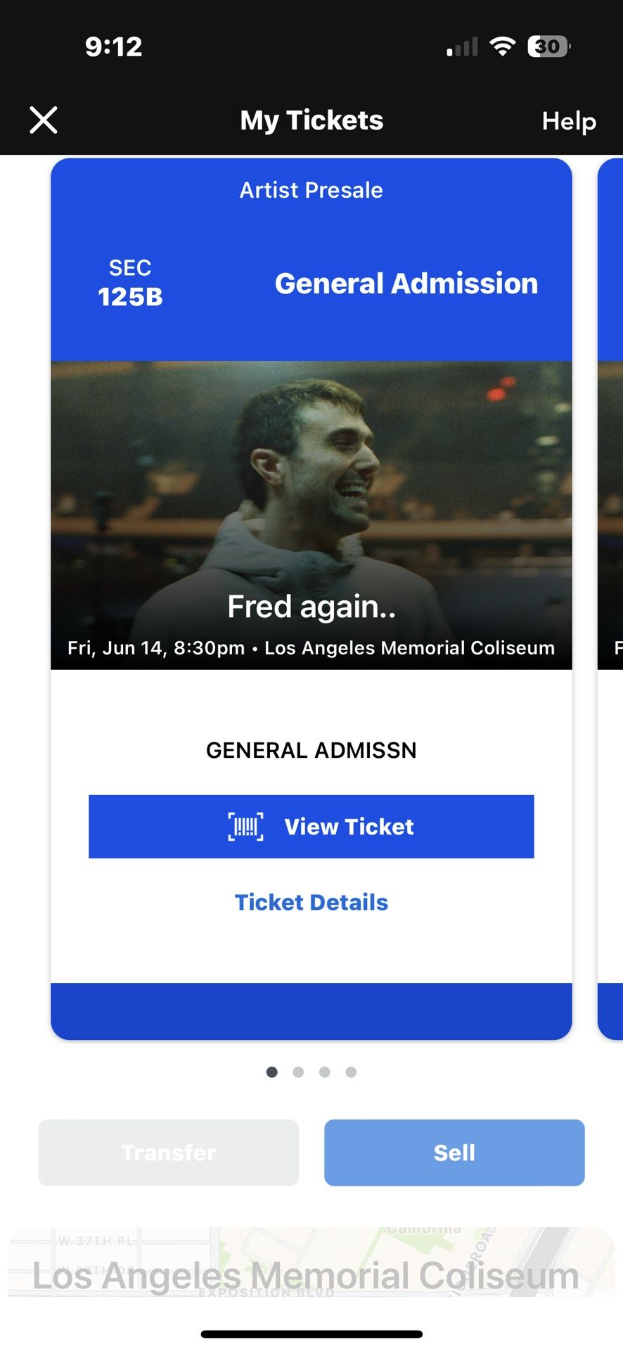 1 SINGLE FRED AGAIN… TICKET FOR TONIGHT! 125B GA
