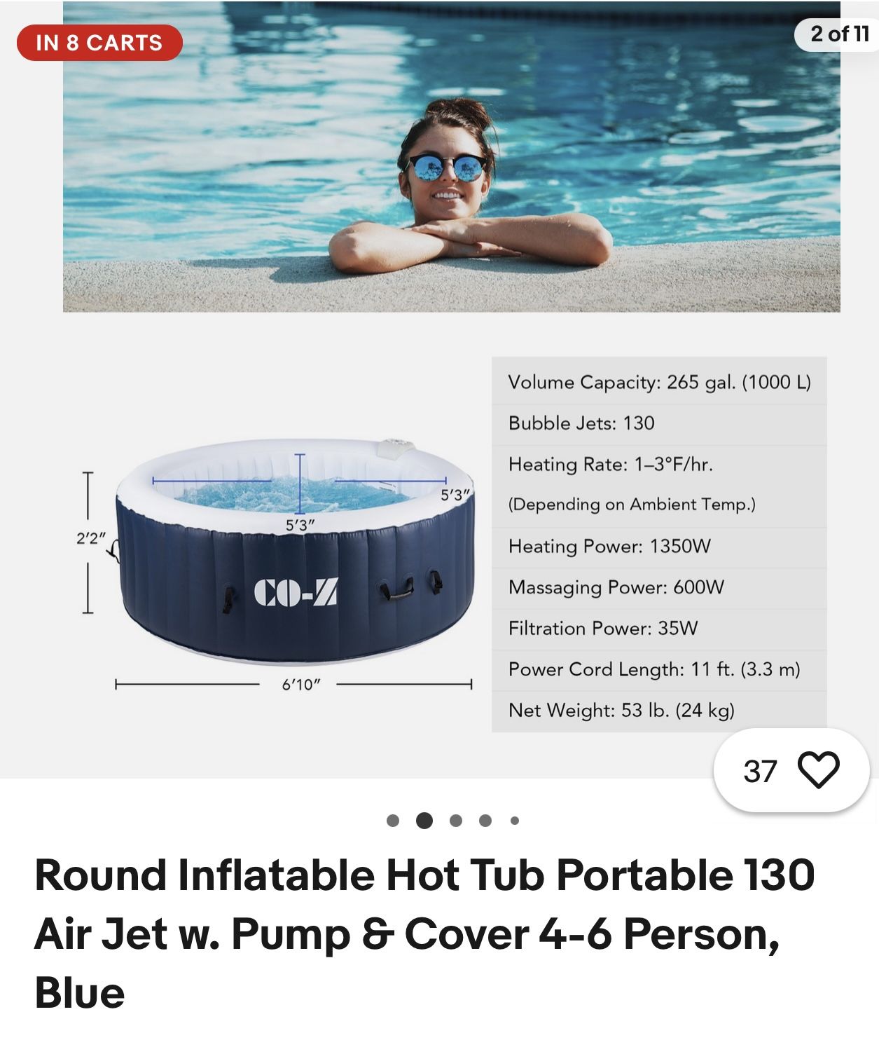 We ordered this item and set it up and put water in it and everything works however we were not able to use it so we immediately dried everything and put it back in the box. Please see all of the pictures for all specifications, including measurements Available for pick up in the Craig and Clayton area
