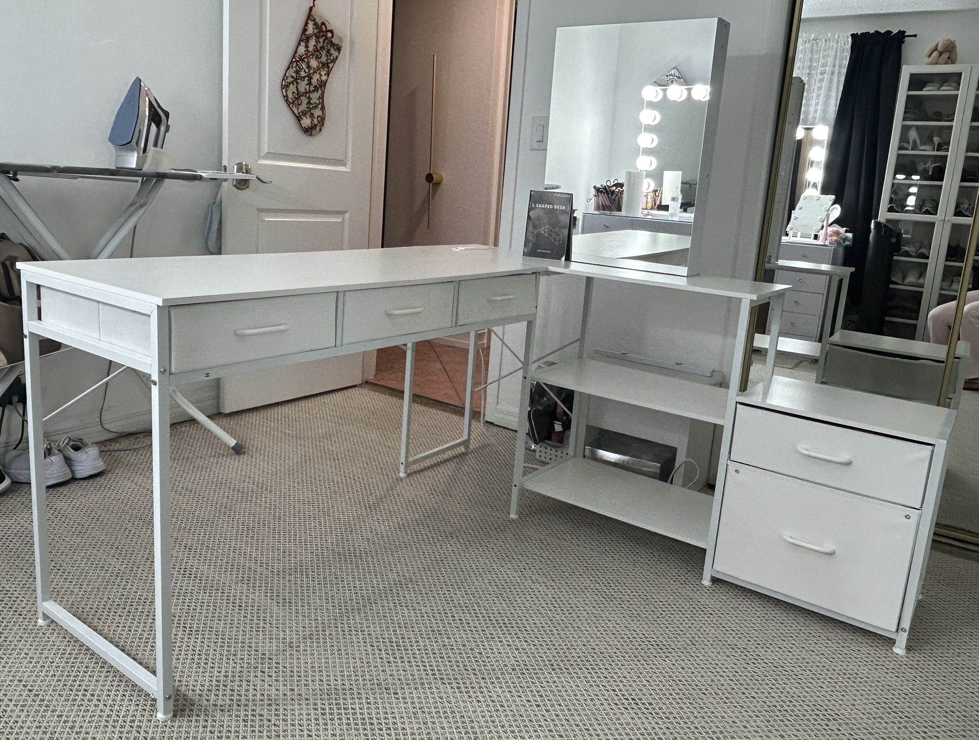 L Shaped Desk with Vanity Mirror
