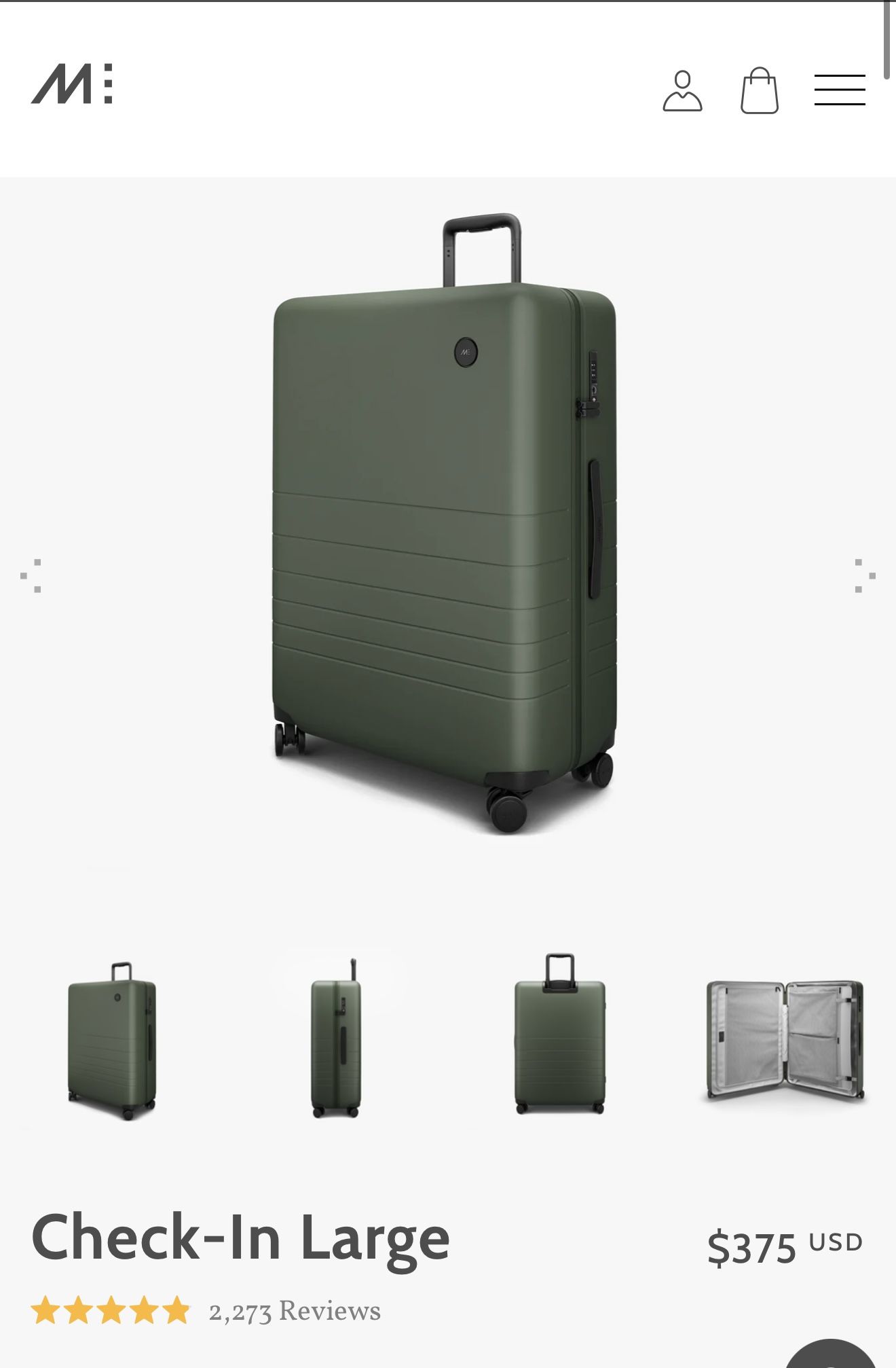 MONOS- Brand New in Box Large Check In Bag - Olive Green