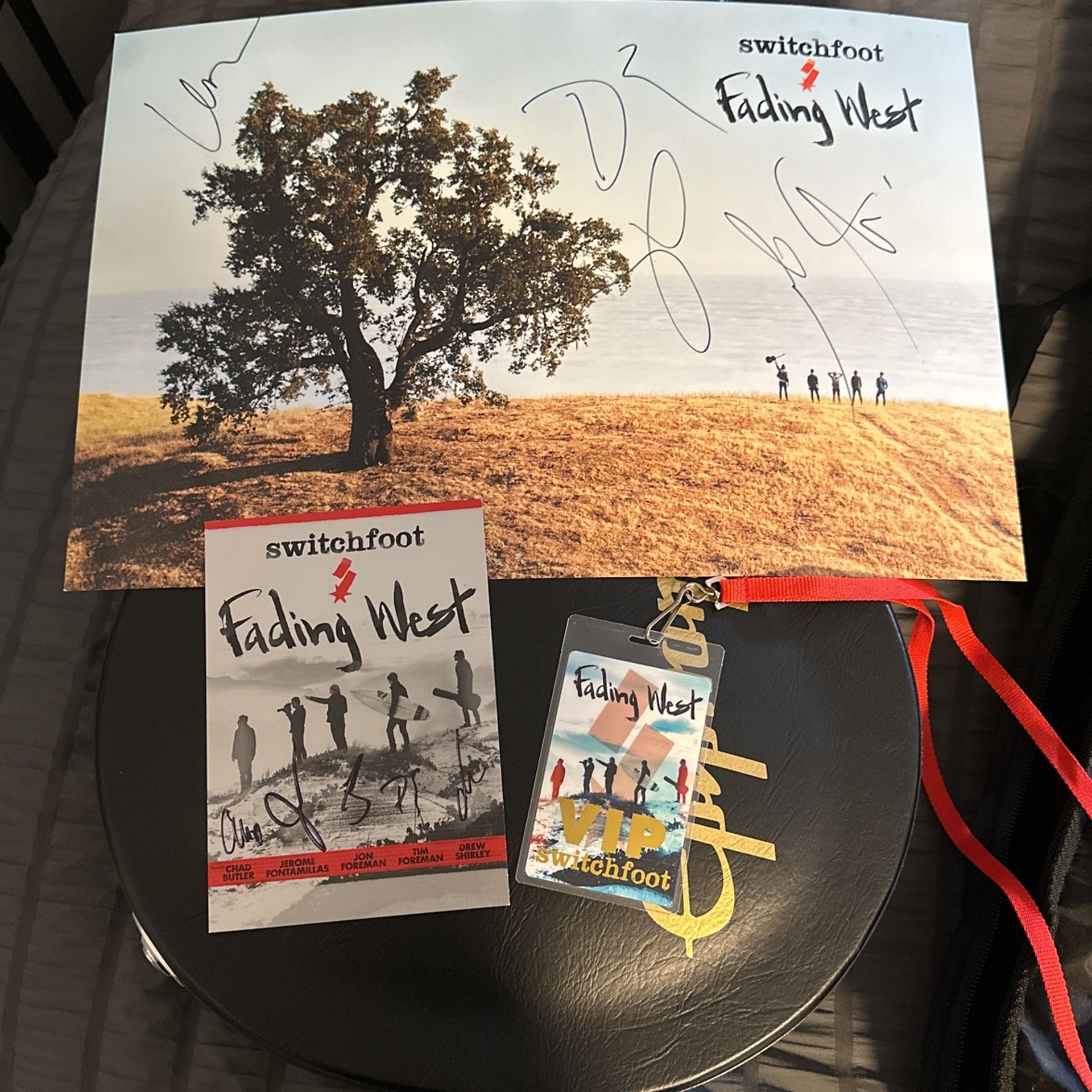 Signed Fading West poster Signed Fading West film sheet VIP lanyard I believe the film code was used, but no damage to items Selling for $130 on eBay, asking $50 for all