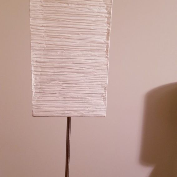 Nice modern off white lamp shade with metal post. Stands about 16" in height.