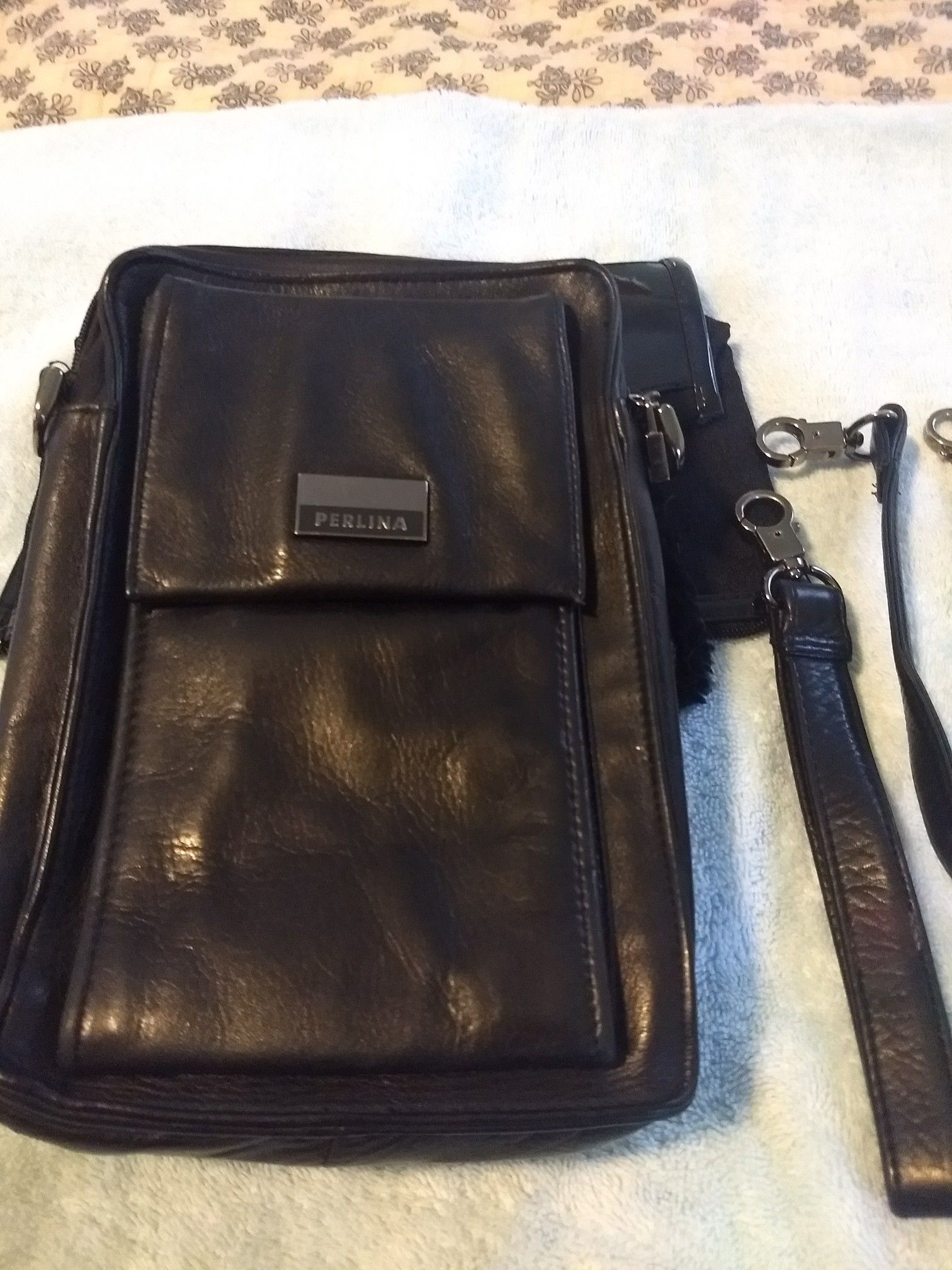 Perlina Leather Shoulder or Wristlet Bag. In very good condition. Shoulder strap and Wristlet.