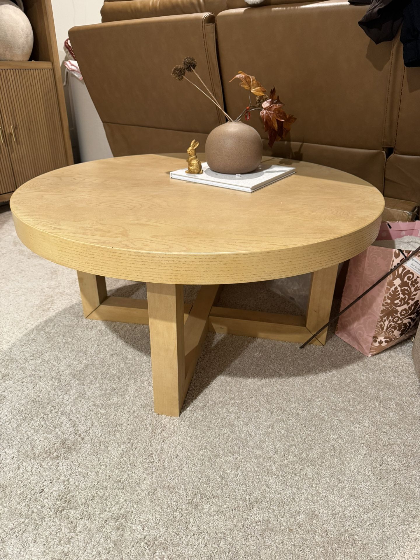Selling this coffee table by studio McGee. Wood frame and wood veneer top. Great condition! Medium weight but still light enough to easily move around. The perfect light wood color and modern style to match any home. Just has a few marks and knicks on some areas but overall looks almost new! Sold out and discontinued style. Originally $225