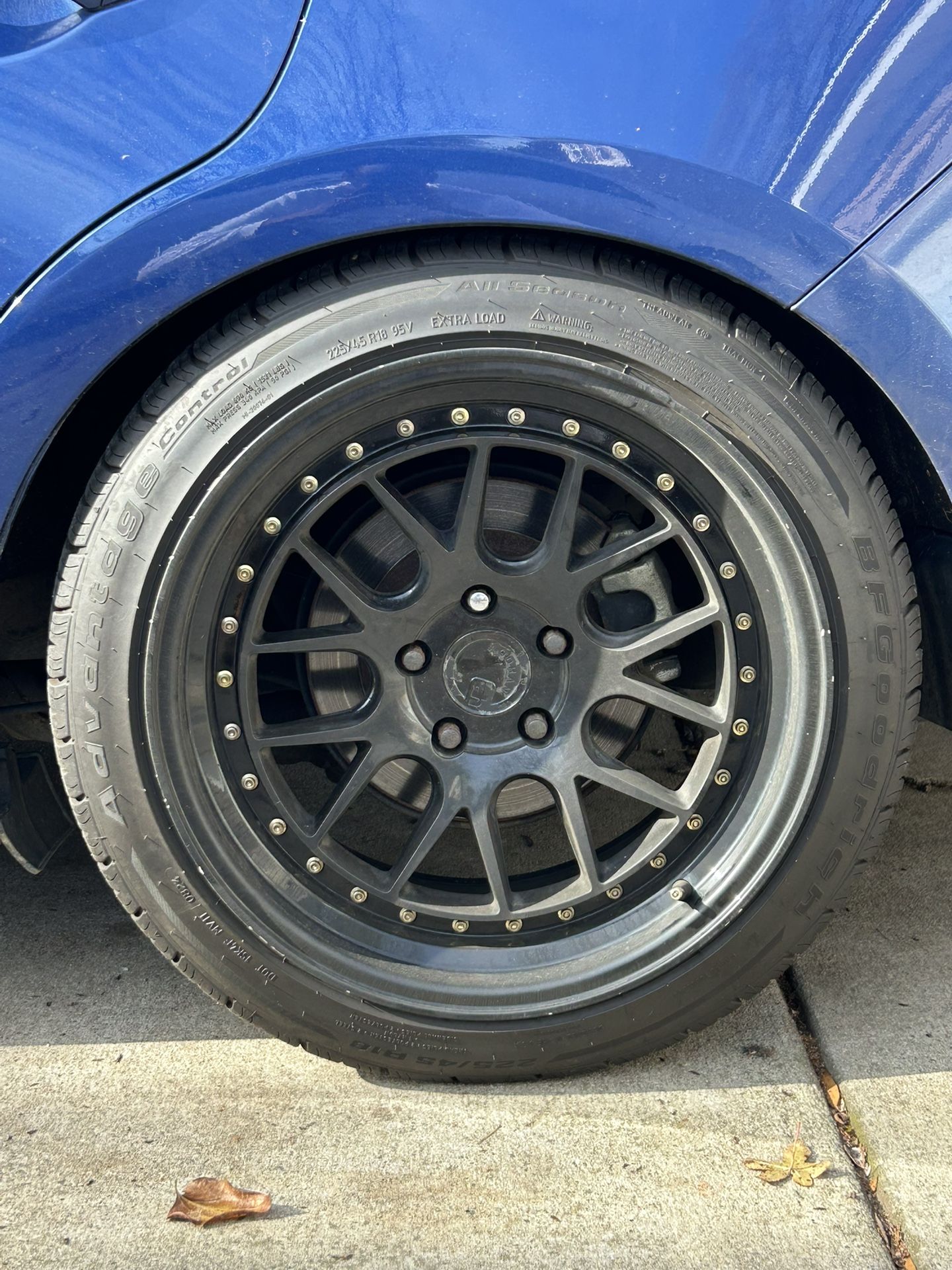 Set of black 18” wheels and some good 225/45/18 set of tires wheels have some curb rash as u can see. 64.1mm hub. Make me an offer