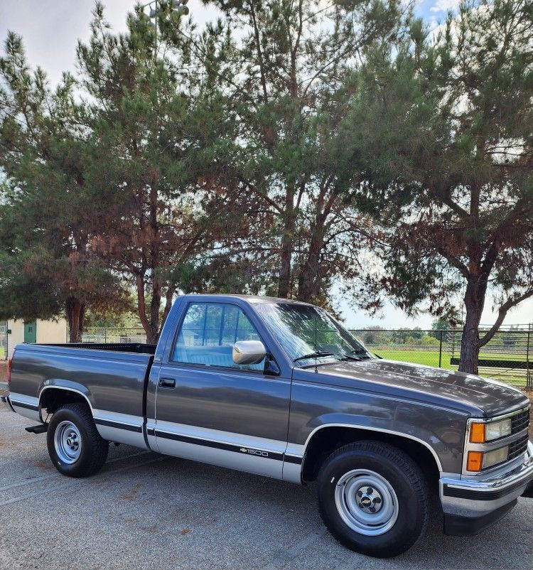 Clean title 1 owner All Original 1991 Chevrolet Silverado c1500. Purchased from the original family. Currently on non op. Real clean in and out. Always garage kept. Hard to find two tone slate gray with the rare 5.7 350 sbc 5 speed stick shift option A/c , Power windows , power door locks and tilt steering. Trucks has 200k freeway miles. Runs Like new. Michelin tires with about 95 percent thread ( original spare tire and jack included). New battery New fuel pump MUST SEE TO APPRECIATE Serious buyers please. No low ballers If price is not in your price range I understand. C/k 1500 gmt400 c/k1500 chevy pickup shortbed single cab 454ss 454 sport cheyenne troka chevi