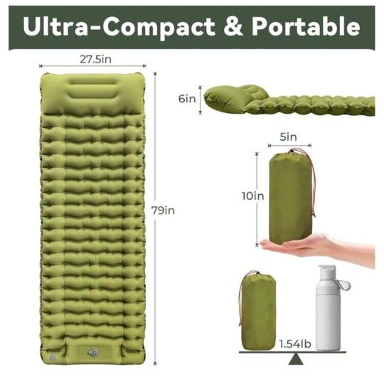 Lightweight Camping Mat with Air Pillow, 4inch Portable Waterproof Air Mattress Backpacking Sleeping Pad Built-in Foot Pump Sleeping Mat for Hiking,Camping,Traveling with side snaps allowing to connect to other Sleeping pad open box new selling for only $15