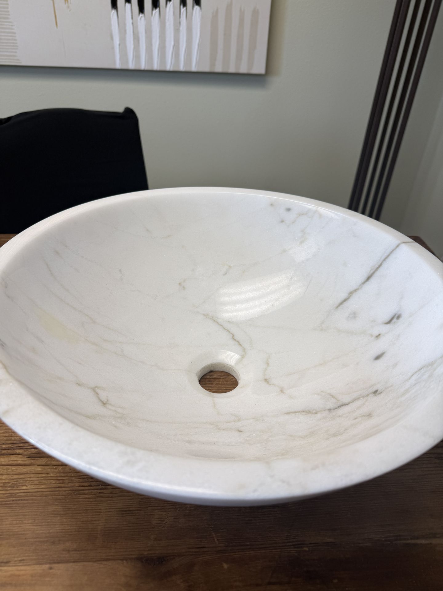 Brand new round marble vessel sink, never installed. Clean white finish with natural veining — modern, high-end look. Approx. 16–17” wide and about 5–6” tall Still in original packaging, great condition 💲 $140 Pickup in Los Alamitos, CA