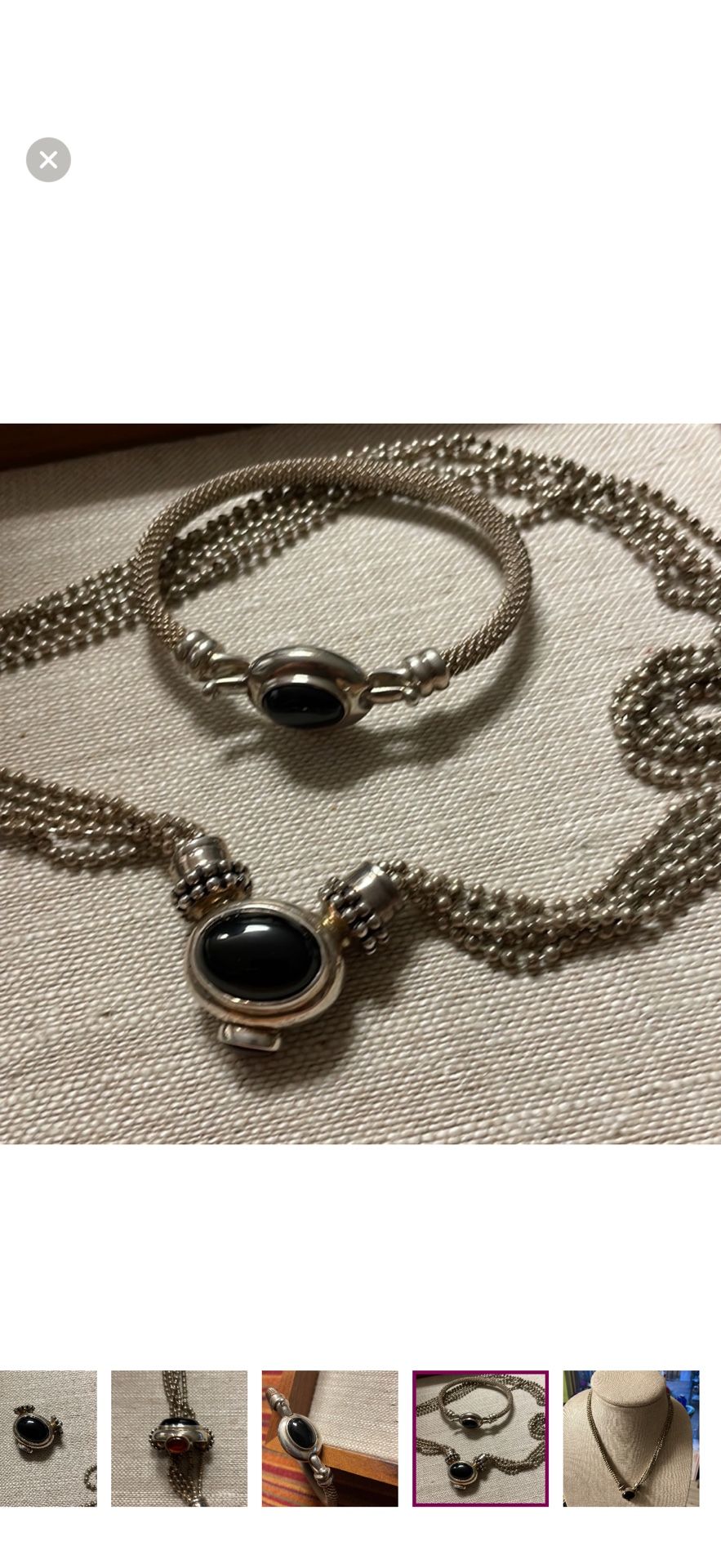 ESPO SIG 925 Sterling Multi Strand Beaded Onyx & Amber Snap Pendant Necklace Product Description: This striking necklace features a multi-strand beaded chain for use with the 925 ESPO / SIG interchangeable snap pendants. This comes with the pictured oval black onyx and amber pendant. Bracelet is also marked 925 ESPO SIG Necklace Length: 18" Bracelet:- 6.5-7” Stone section: 1" wide x 7/8" tall Hallmarks: 925 ESPO / SIG Weight: 2.8 oz. (For both) Condition: pre-owned See pictures for details & condition~ This is a pre-owned item and not new. It has normal wear and patina consistent with age and use.