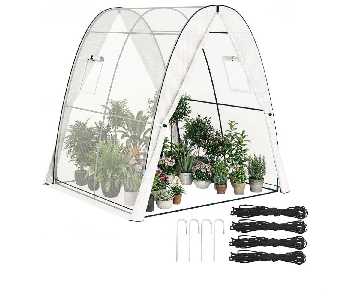 Outsunny 6' x 6' x 6.6' Hoop House Greenhouse with Sandbags and Hemmed PE Cover, Walk-in Tunnel Green House with 2 Doors and Screen Wind=Q5-285