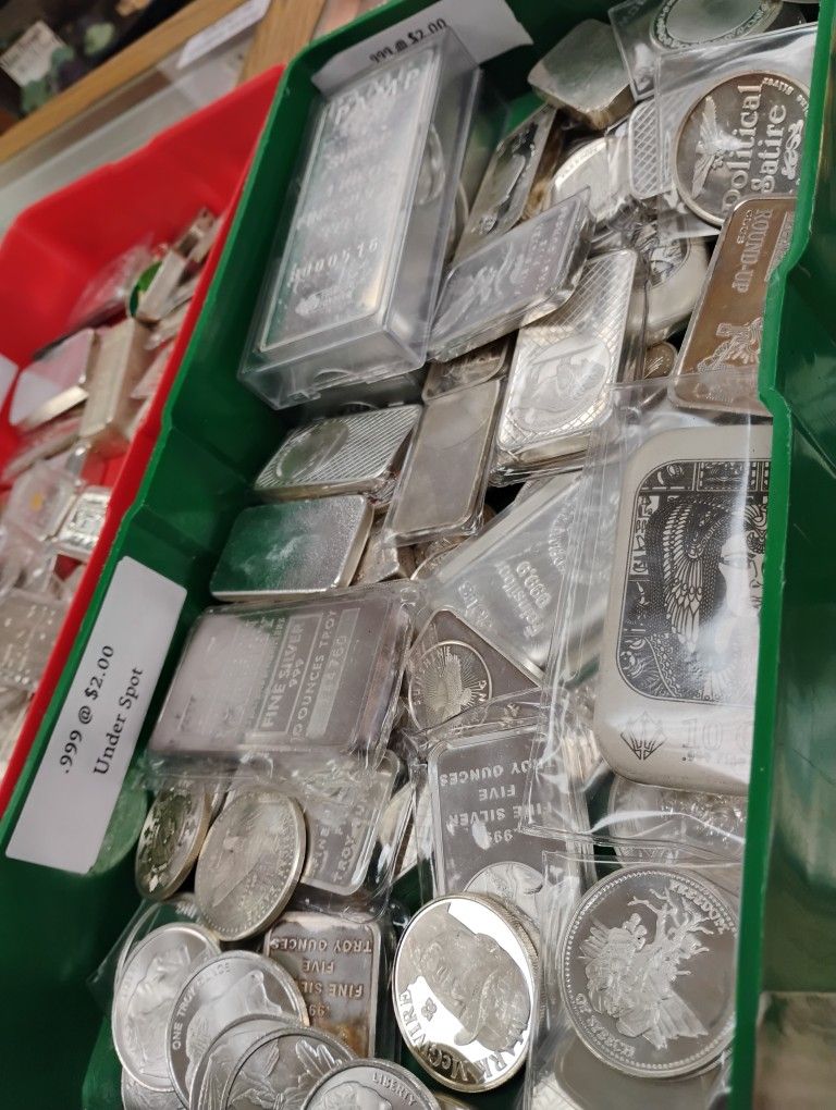 Silver for $2 less than the price of silver per ounce. Plus if you spend over $2000 on gold and/or silver you will be tax exempt. Cash only deal. We are located at 28063 Bradley Road Sun City, CA. 92586
