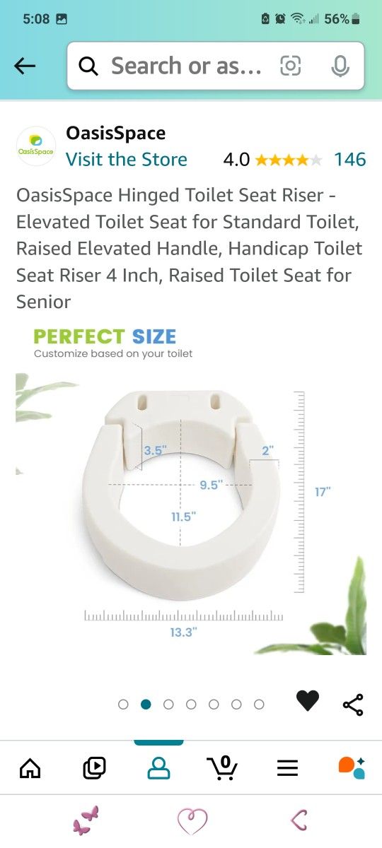 4 inch hinged (easy to lift open) toilet seat. Easy to install. Like new, used 1 month after hip replacement surgery.