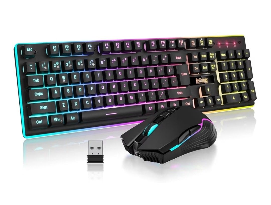 RedThunder K10 Wireless Gaming Keyboard and Mouse Combo, LED Backlit Rechargeable 3800mAh Battery, Mechanical Feel Anti-ghosting Keyboard + 7D 3200DPI