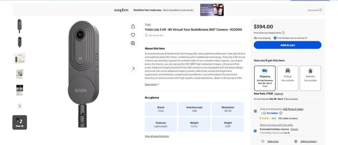Great camera for getting real estate photos of rooms. Look up videos on youtube if you dont know how it works. This camera Rotates around on a tripod snapping photos and pieces it together making a crisp 360 photo that doesnt look distorted like fish-eye 360 cameras.
