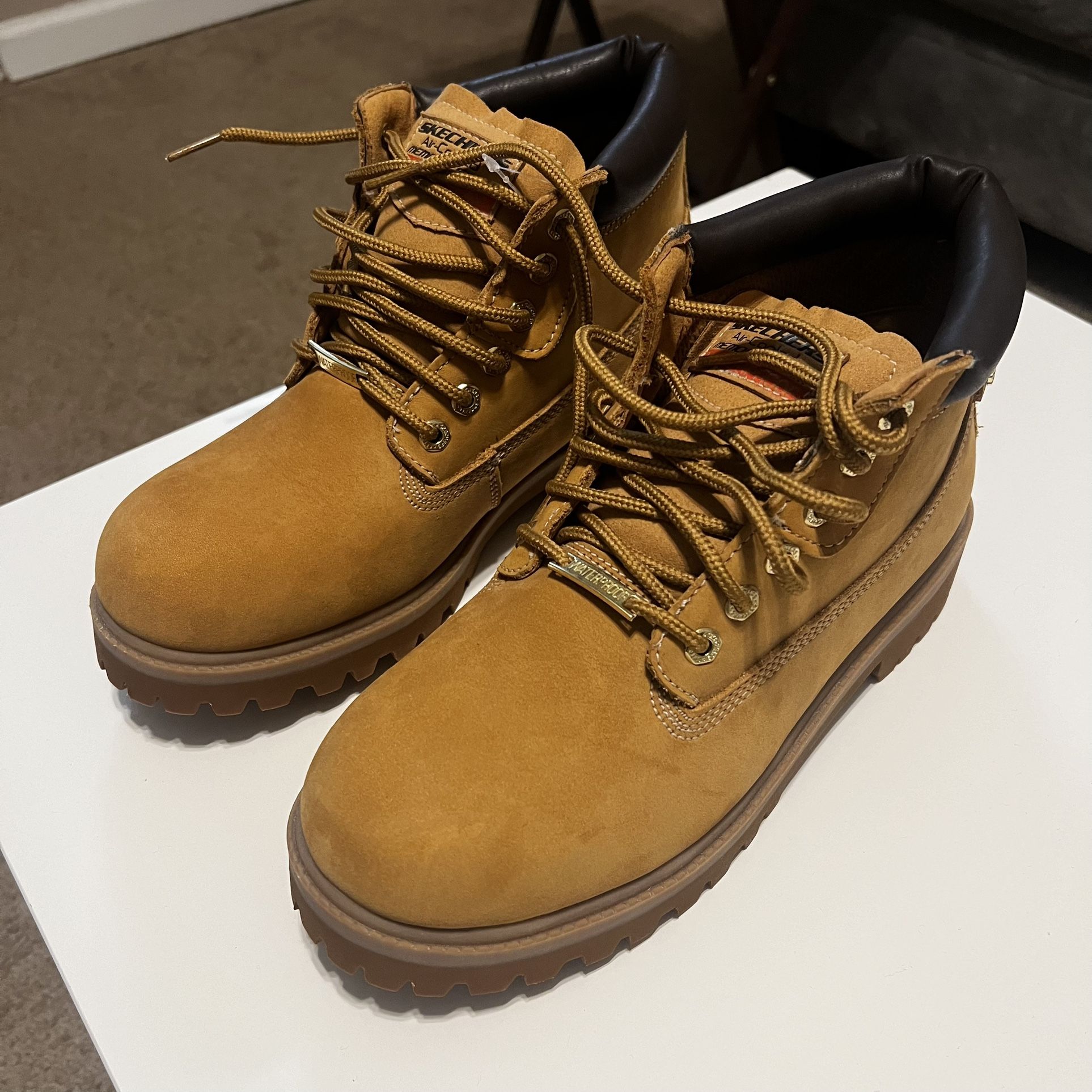 Skechers relaxed fit air cooled memory foam water proof men boots.
