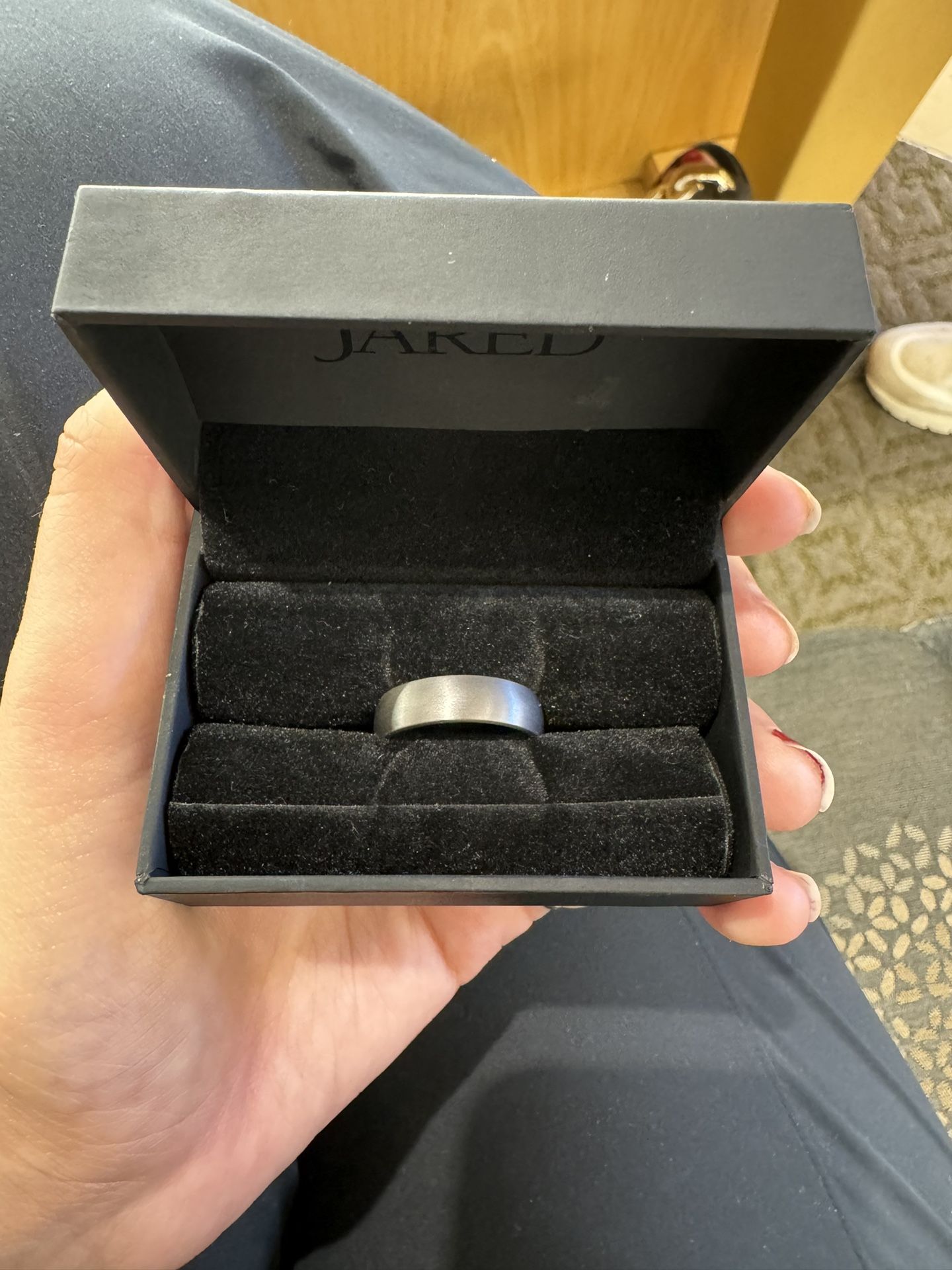 BRAND NEW. Ordered it online but selling because it didn’t fit my finger and needed to get another one before the wedding! Original price 450 (see last picture) Material: Tantalum - looks like a grey graphite / titanium color Size: 8.5 Great as a wedding band or even just a nice ring. $350 OBO