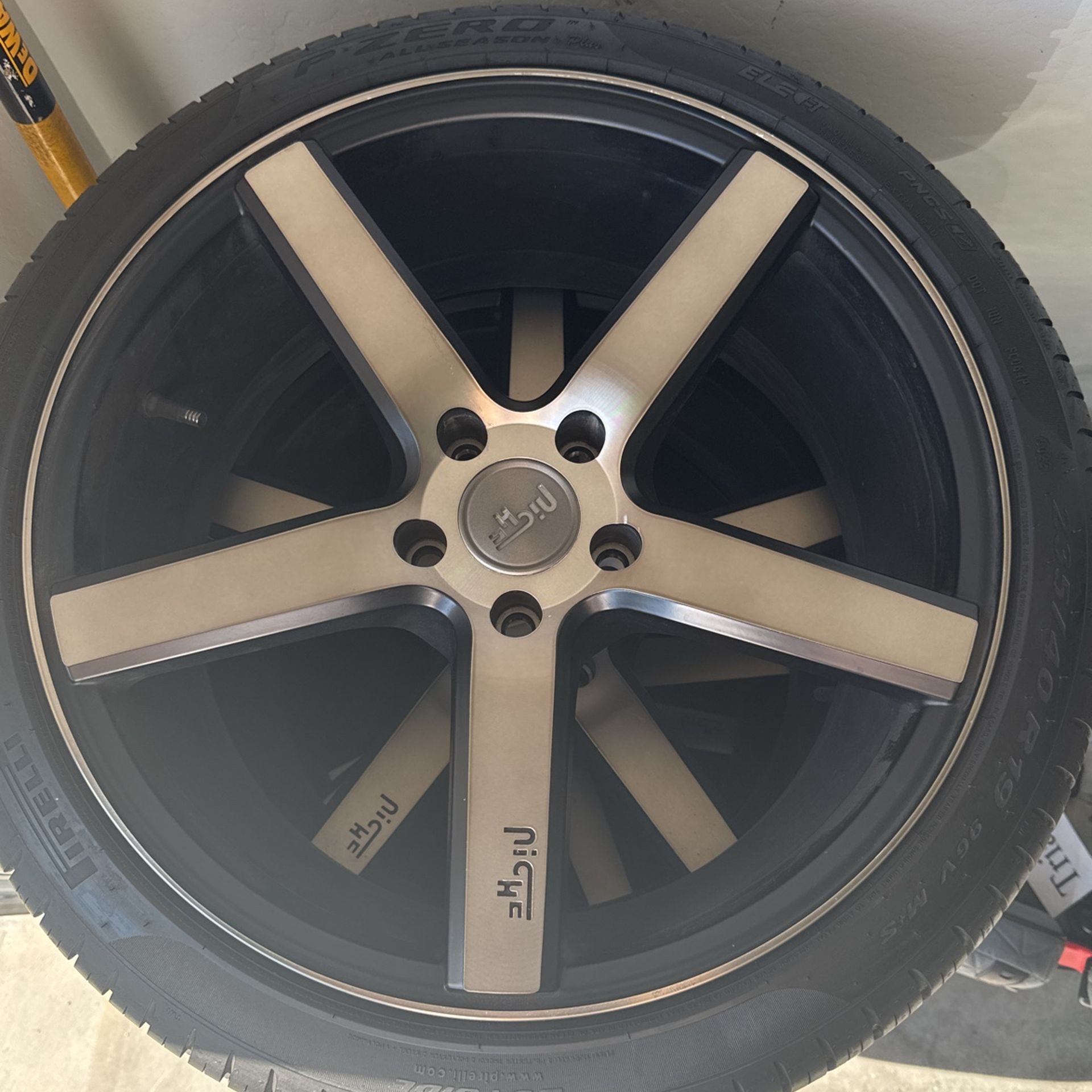 These are pretty new Perelli P Zero tires that I had on my car. These do have foam inside to damp in the noise. These run about $225 a piece and are very good tires as far as road noise goes, they handle extremely well on the road. Unfortunately, we ended up getting rid of the car due to needing a bigger vehicle with the increase in size to our family. The rims are also new as they were purchased with the tires as you know with Arizona being hot and the type of materials used for the roads here some of the flaking has come off of the rims already But they still look really good. I’m asking $1100 for everything. The tires themselves have foam inside also to help decrease road noise. Serious offers only.
