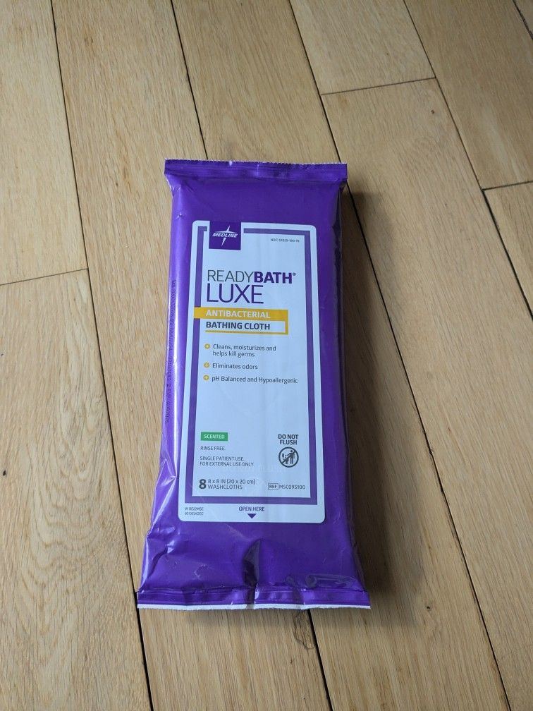 Medline ReadyBath Select Antibacterial Thick Adult Bath Wipes, 8 Wipes, Scented, No Rinse Formula with Aloe, Sensitive Skin, Hypoallergenic, Alcohol-Free, 8 x 8 Inch. Expiration AUGUST 2026. Item details: Brand: Medline Skin Type: All Material Feature: Disposable Unit Count: 8 Count Special Feature: Rinse Free Designed with care in mind - Antibacterial bath wipes are formulated with aloe to soothe and moisturize skin while being hypoallergenic, pH-balanced, lightly scented, with no alcohol for maximum comfort and care Rinse-free cleansing cloth - Designed to cleanse your body as a full shower, enjoy 30 convenient, resealable packs of 8 generously sized 8 x 8 inch wet wipes as a full body shower, or simply freshen up with this thick adult wipe Stay comfortable while cleansing - ReadyBath Select bathing wipes are formulated to soothe even the most sensitive skin and also eliminate odors and kill germs On-the-go ease - Body wipes are premoistened shower wipes for adults with a no rinse formula that cleans, moisturizes, and comforts skin; wipes stay hydrated in our resealable, on-the-go storage packs Use anywhere, anytime - Our adult wipes are ideal for post-surgery bathing, incontinence care, bathing wipes for camping and hiking, elderly wipes, or simply to freshen up
