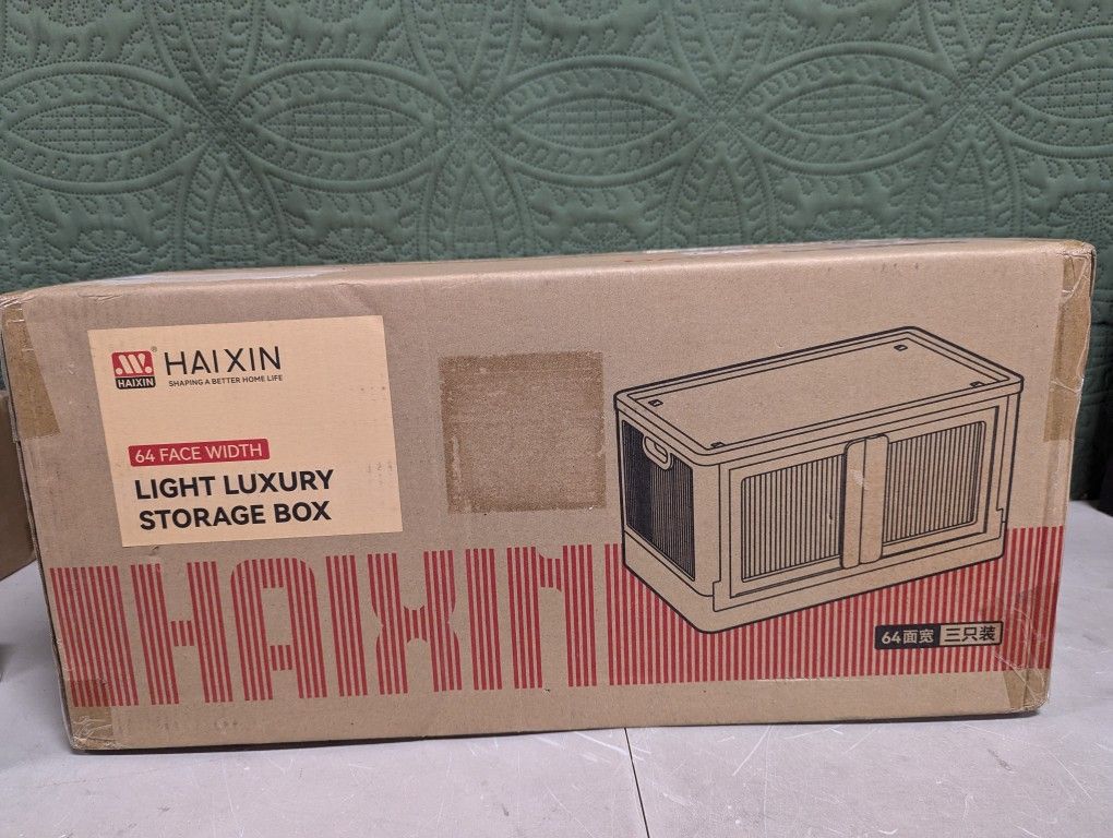 Storage Bins with Lids - Collapsible Storage Bins, Clear Black Wardrobe Closet Organizer, 19 Gal Stackable Toy Storage, Foldable Plastic Storage Container with Door, Crate for Book Storage (3 Pack)