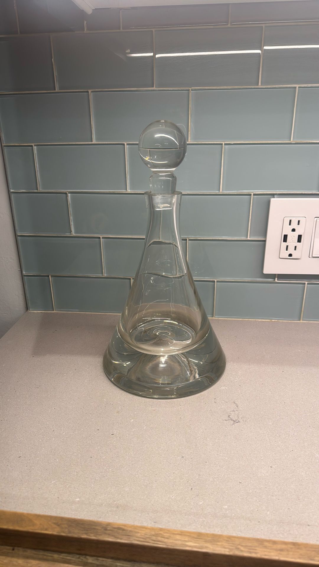 Heavy weight glass decanter. I bought it from an antique shop by U Village 20 years ago. Paid $120 for it then.