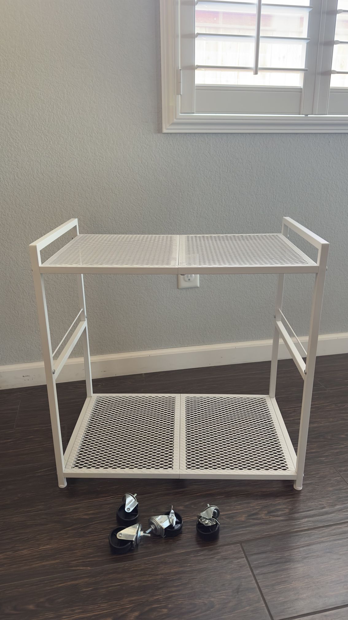 I am selling this Computer Tower Stand, PC Tower Stand Metal Rolling Cart Holds up to 40lbs, 2 Tier Mobile Printer Stand with Storage Under Desk for Home & Office, White. There is nothing wrong with it. There is no damage to it. It was barely used. I can meet you at 200 Civic Center Dr, Vista, CA 92084