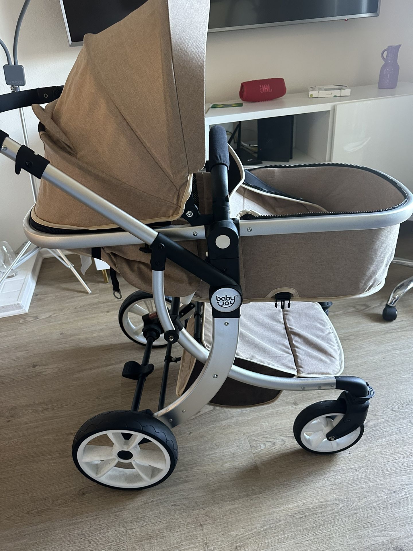 Brand new. Never used Aluminum + Linen + Rubber 2-IN-1 BABY STROLLER--- The infant basket can be detached when it is inconvenient to go with a baby stroller. Its adjustable seat can be reclined to accommodate your sleeping infants or attentive toddlers. With a push or pull, you can adjust the seat higher or lower as you like to make your baby well rested.