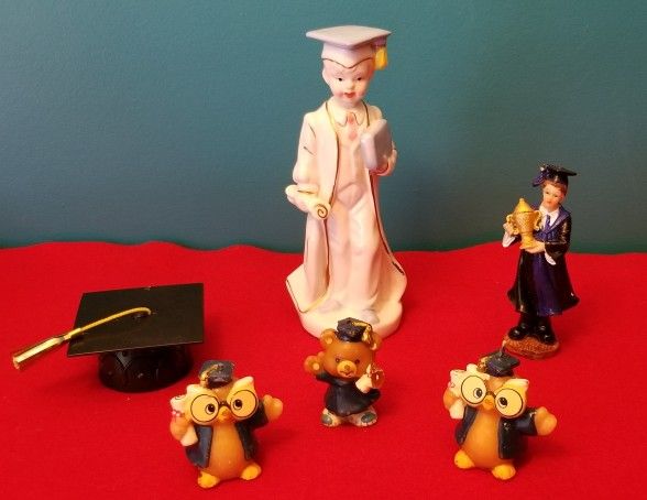 6 pcs. Graduation Figurines, Cake Topper, Owl Candles and a Graduation Hat. $10.00