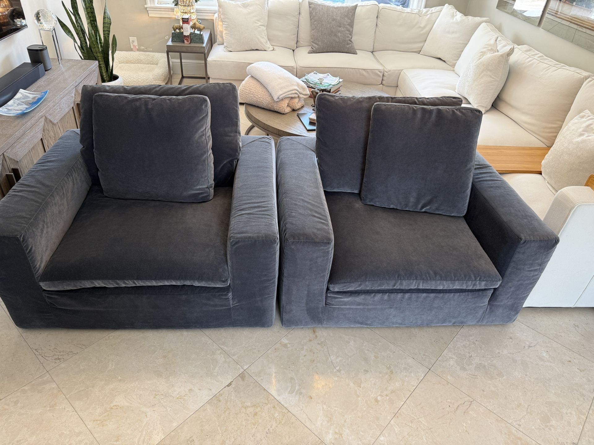 Restoration Hardware Custom ordered Cloud Chairs in Performace Velvet color Indigo. $800 for both chairs.