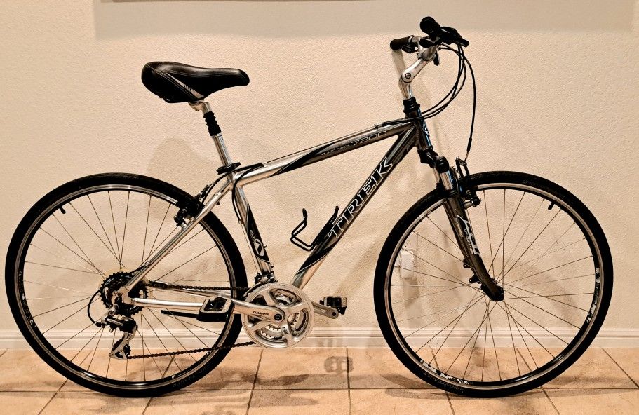 Selling my TREK 7200 Commuter Bike with a 18" Alpha aluminum very lightweight frame, TEKTRO V-brakes, 21-speed SHIMANO drivetrain with MEGA RANGE cassette. 60mm suspension fork, AT750 wheels and 700c x 35 TIRES All BONTRAGER, TREK and SHIMANO original parts and accessories. Asking just $160. Cash Only. We'll meet in a safe location with security and video surveillance.