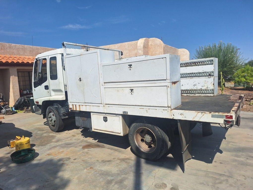 7.8L inline 6 turbo. Allison auto. Air/ hydraulic brakes. 600k miles. Was told engine was rebuilt around 450k. Turbo, windshield and tires recently replaced. Started goin into limp mode a few weeks ago. Had a mechanic scan it... it's says there's a problem with the ecm. Not drivable in current condition but can start/ put into gear, and probably drive onto a trailer It's always been a reliable rig for me. I've driven it all over az and ca (here to la/ sd and back no problem). Don't have time or money for more projects. All toolboxes/ locks in working order. Needs a good going through and maybe a semi retirement on flat land (she pulls grades but doesn't like em haha) Asking $2800 or possible trade towards a 1 ton or bigger pickup (maybe ¾ ton depending on the truck). Not looking for another project i already have plenty.