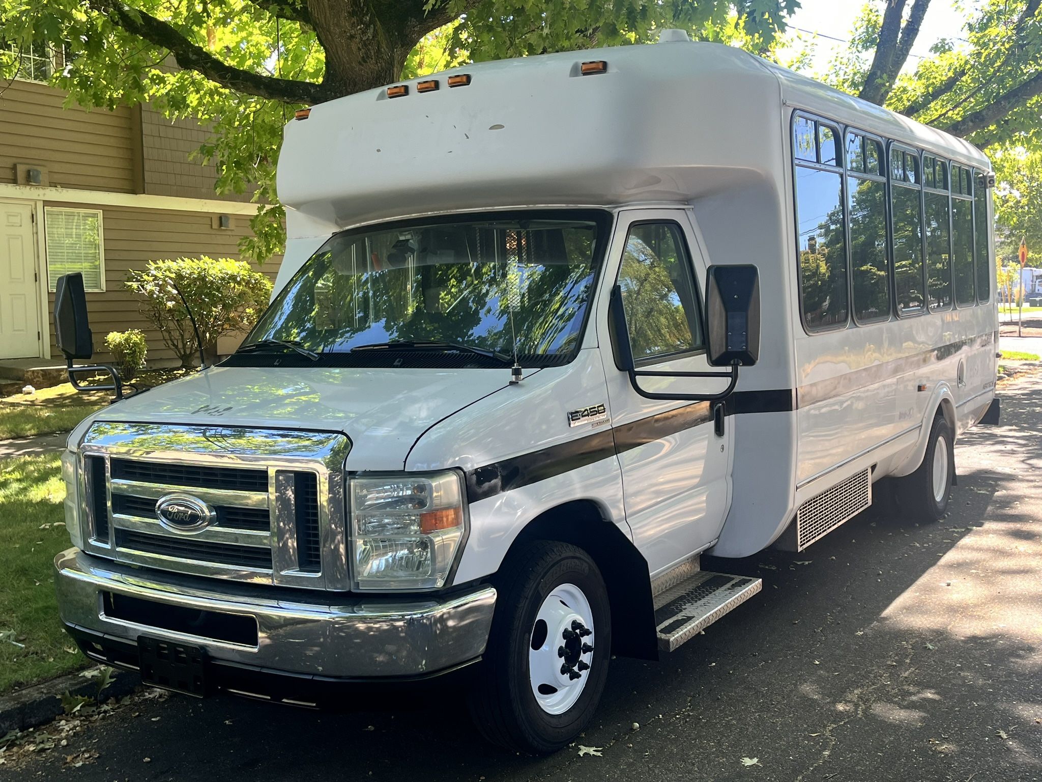 Perfect for beach trips ,camping, parties and seats can be folded for extra space. Routinely maintained Everything works Runs and drives great Ac blows cold Heat pump blows hot Title on hand 10 passenger 11 including driver Has individual seat belts Working lift Interior lighting Seats fold to the side Surveillance cameras SNOW studded tires V10 6.8lt Can deliver as far as Seattle Washington and Eugene, Oregon Open to partial or full trades for Generators,quads,vehicles,tools , gold or anything cool. More Buses also available for sale or rent Seats can also be removed upon request