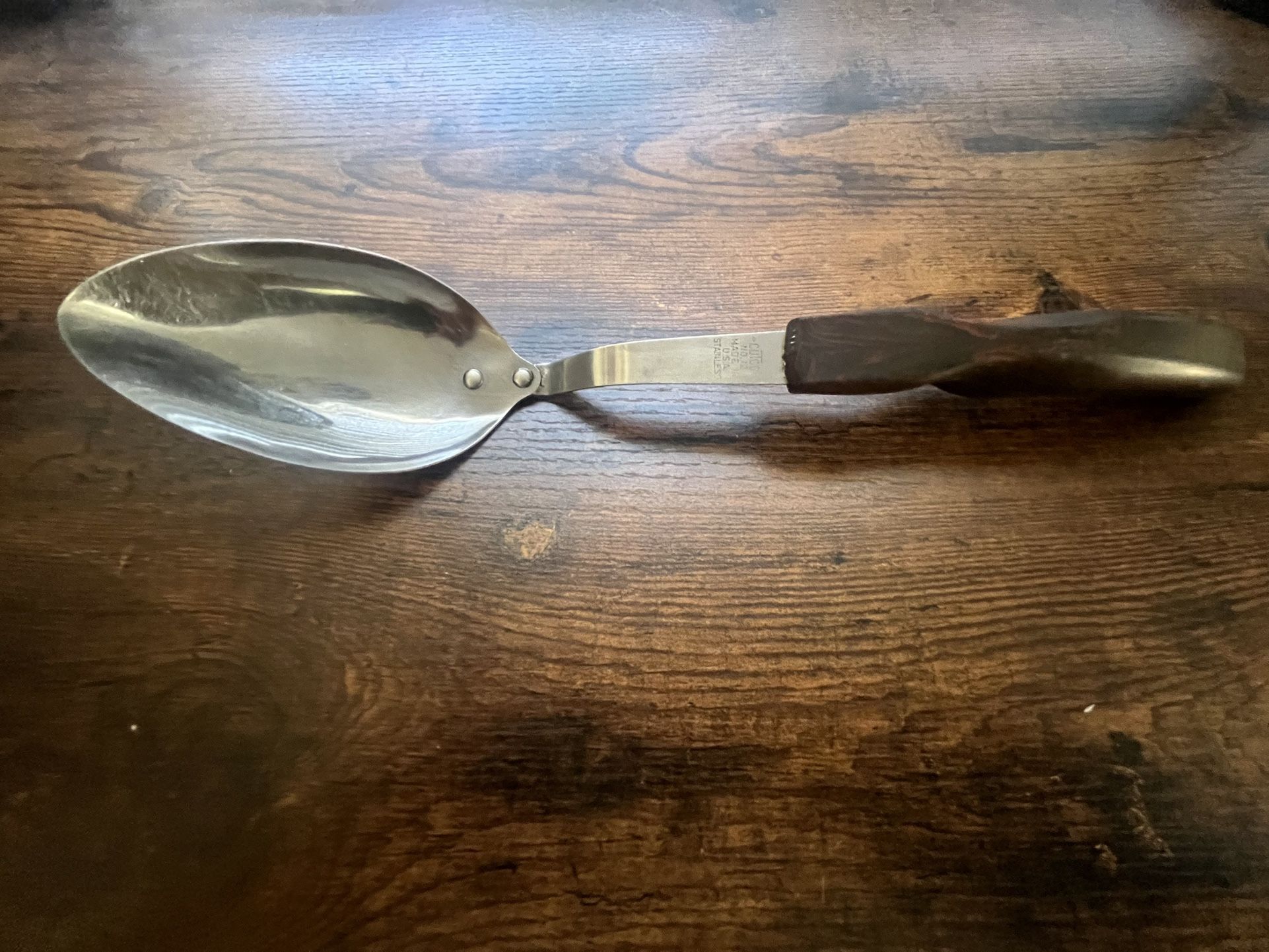 This is a Cutco spoon, fork and whisk. It is made in the USA. The handle is made of composite material. The set includes all 3.