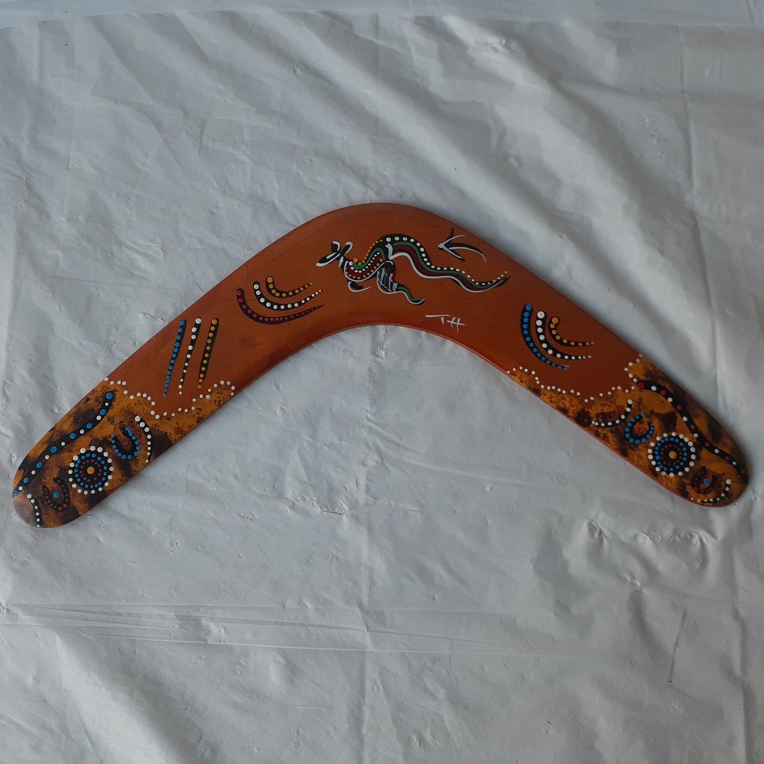 Wooden Boomerang 14 Inches Kangaroo Design Made in Australia Authentic Artistic
