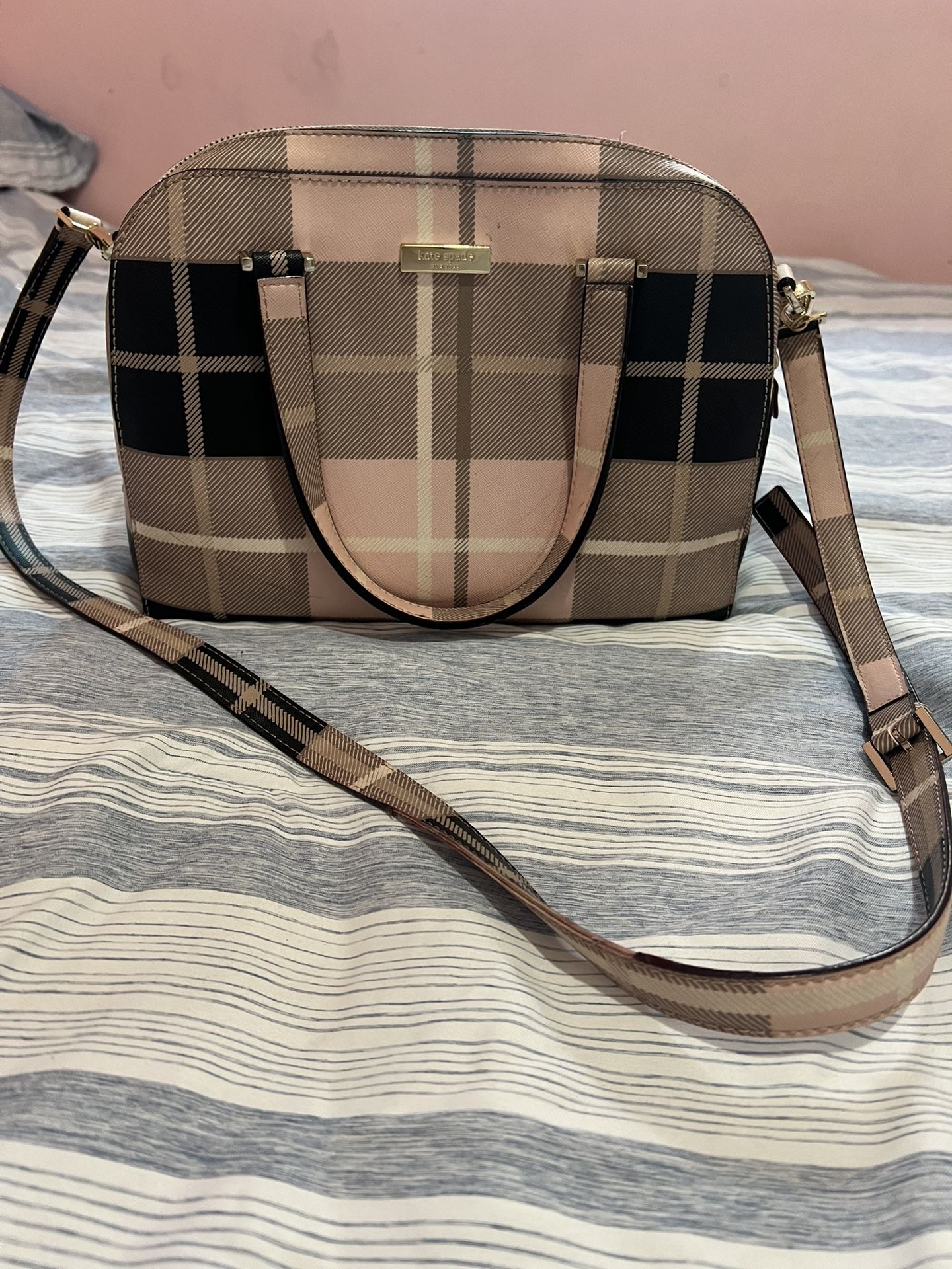 Kate Spade light pink and black checkered bag in good condition