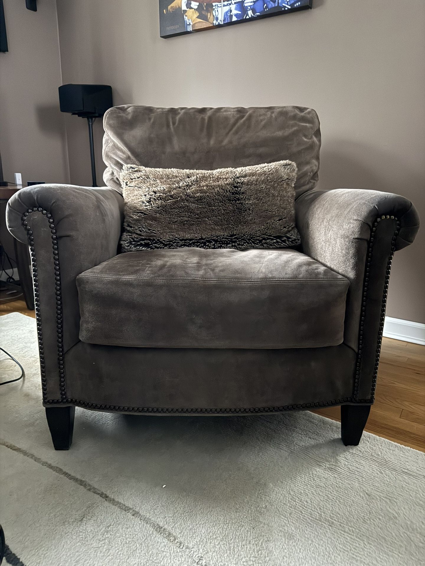 Luxurious suede chair Hand nailed Excellent condition Non smoking Non pet home