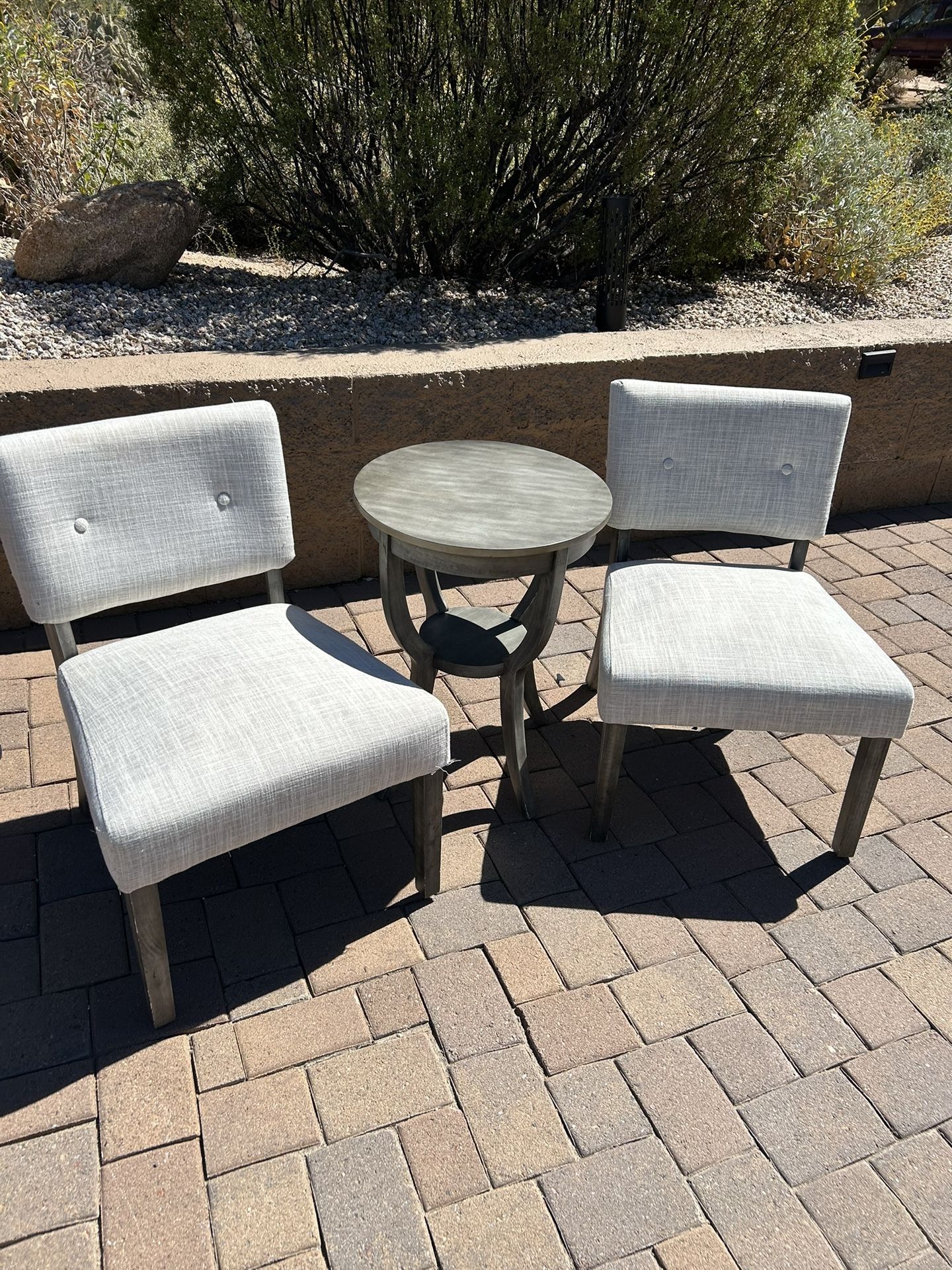 Light beige clothe table and chairs. Good condition