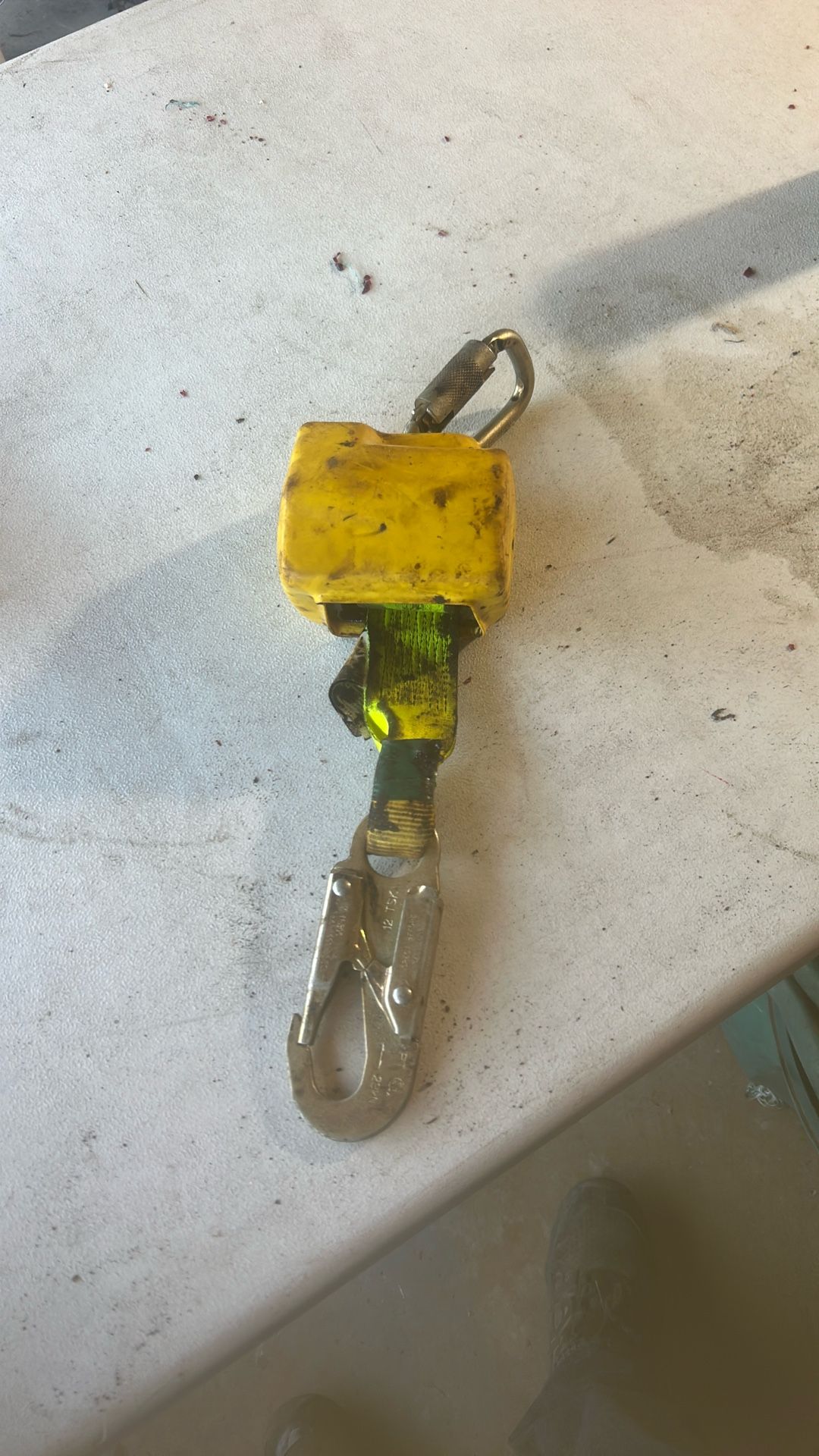 Lanyard self retracting. A fit used and dirty, but does the job.