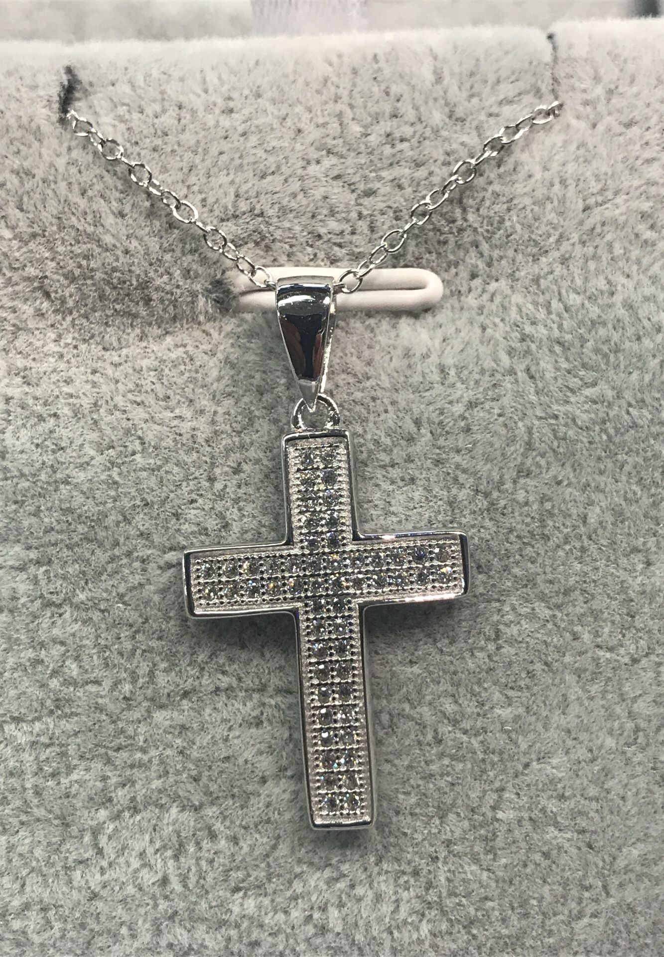 Sterling Silver CZ Cross Pendant with adjustable 16-18” Chain