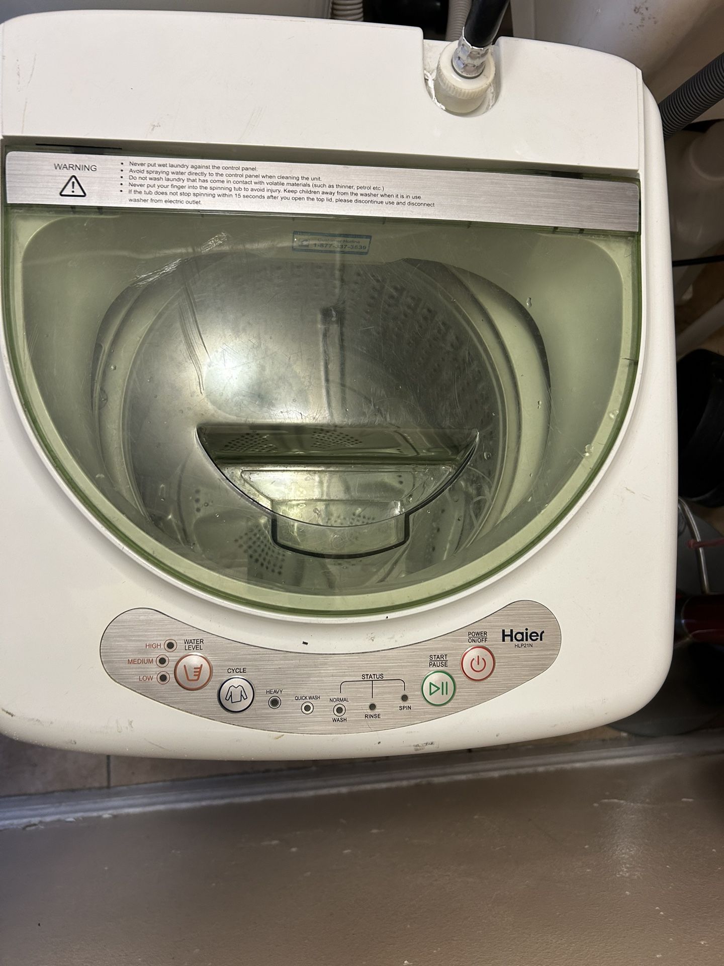 Single water inlet Stainless steel drum Perfect running condition No mechanical/ electrical issue Hose inlet and outlet water included 4 wheels and 43 lbs weight (easy to lift/ move)